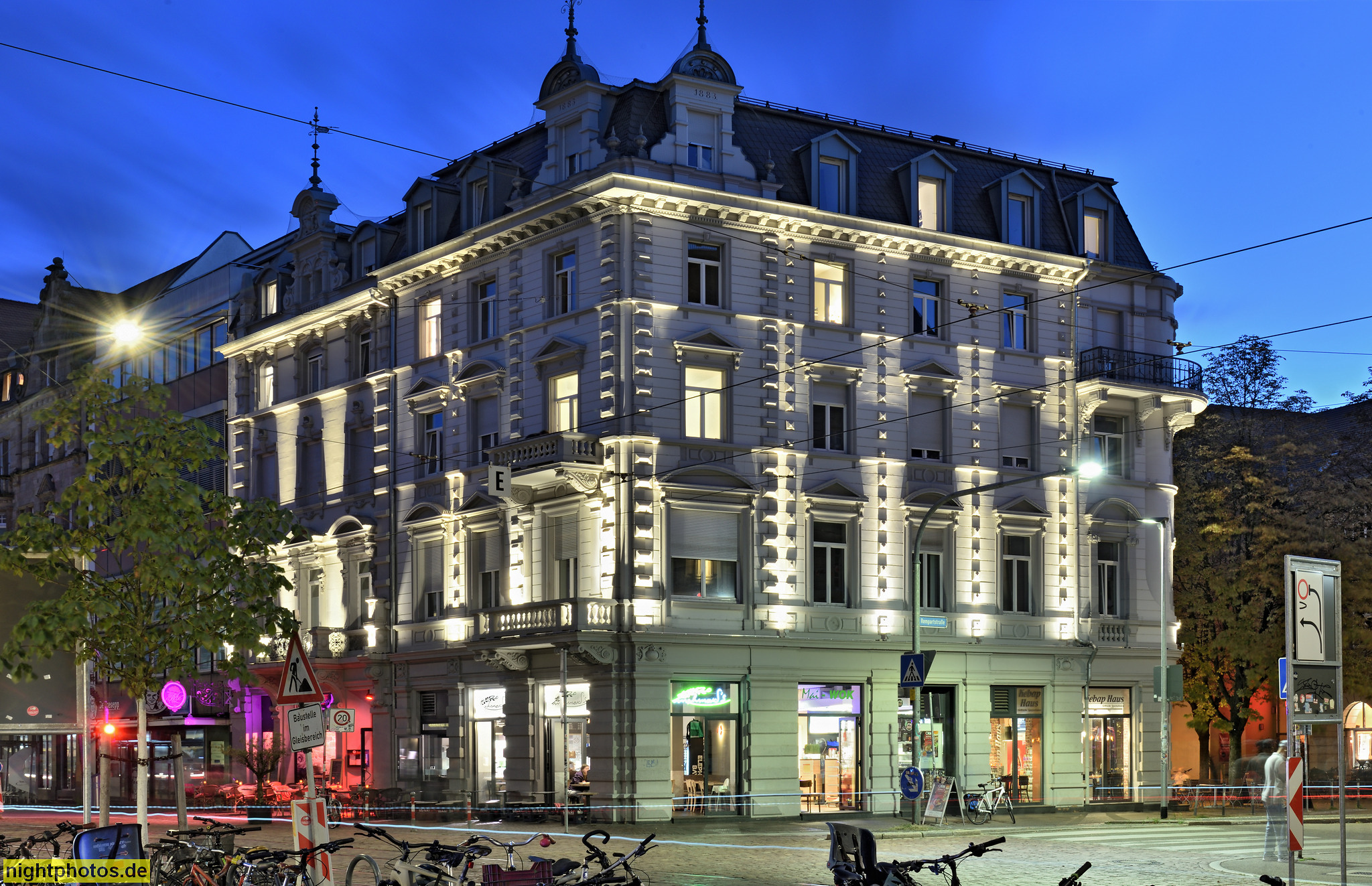 Freiburg. Wohn- und Geschäftshaus mit Holzmarkt Apotheke. Erbaut 1905 von Joseph Ruh. Ehemals Schweizer-National-Haus. Opelhaus. Kaiser-Joseph-Strasse 255