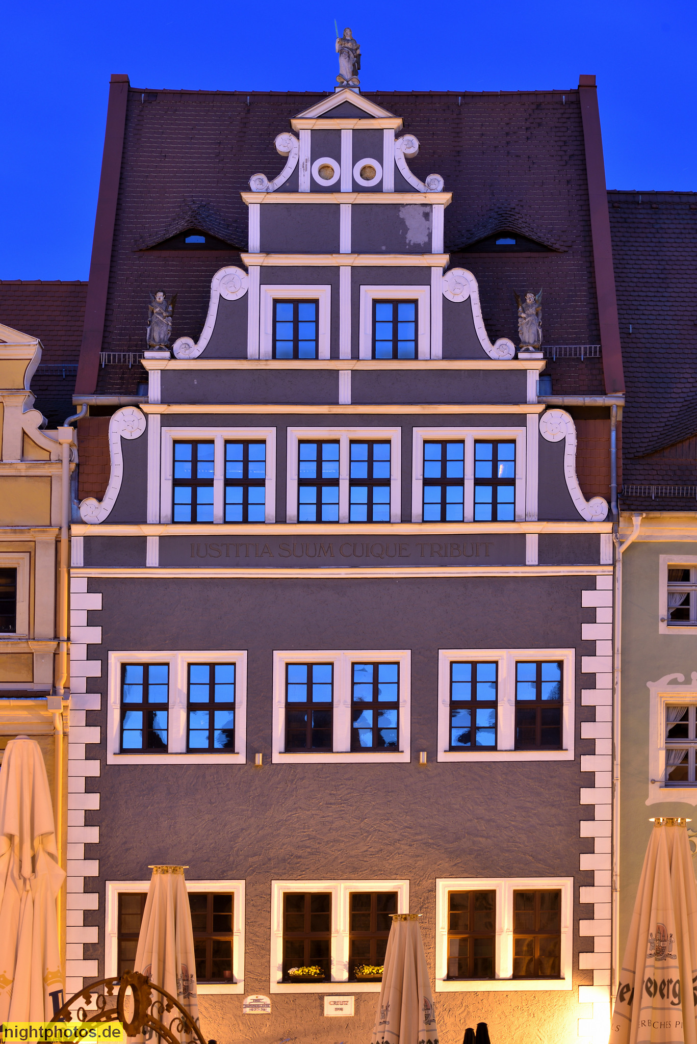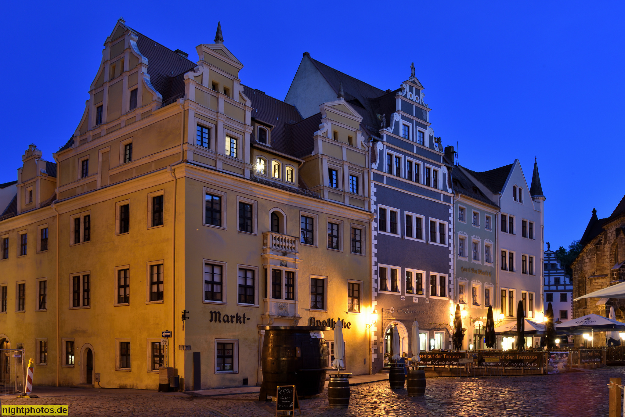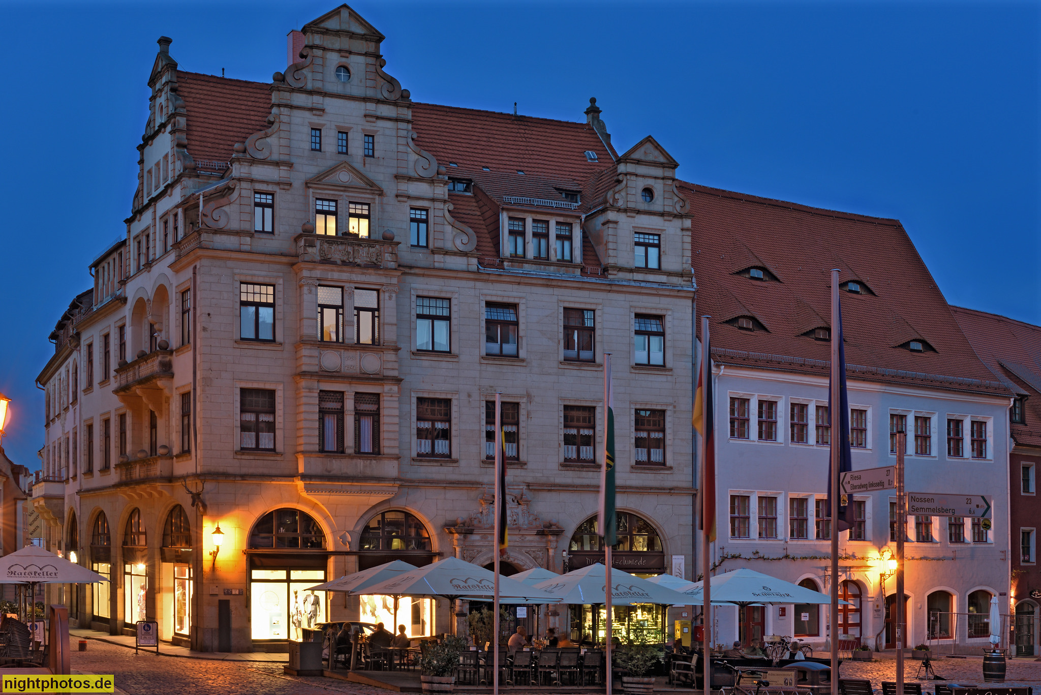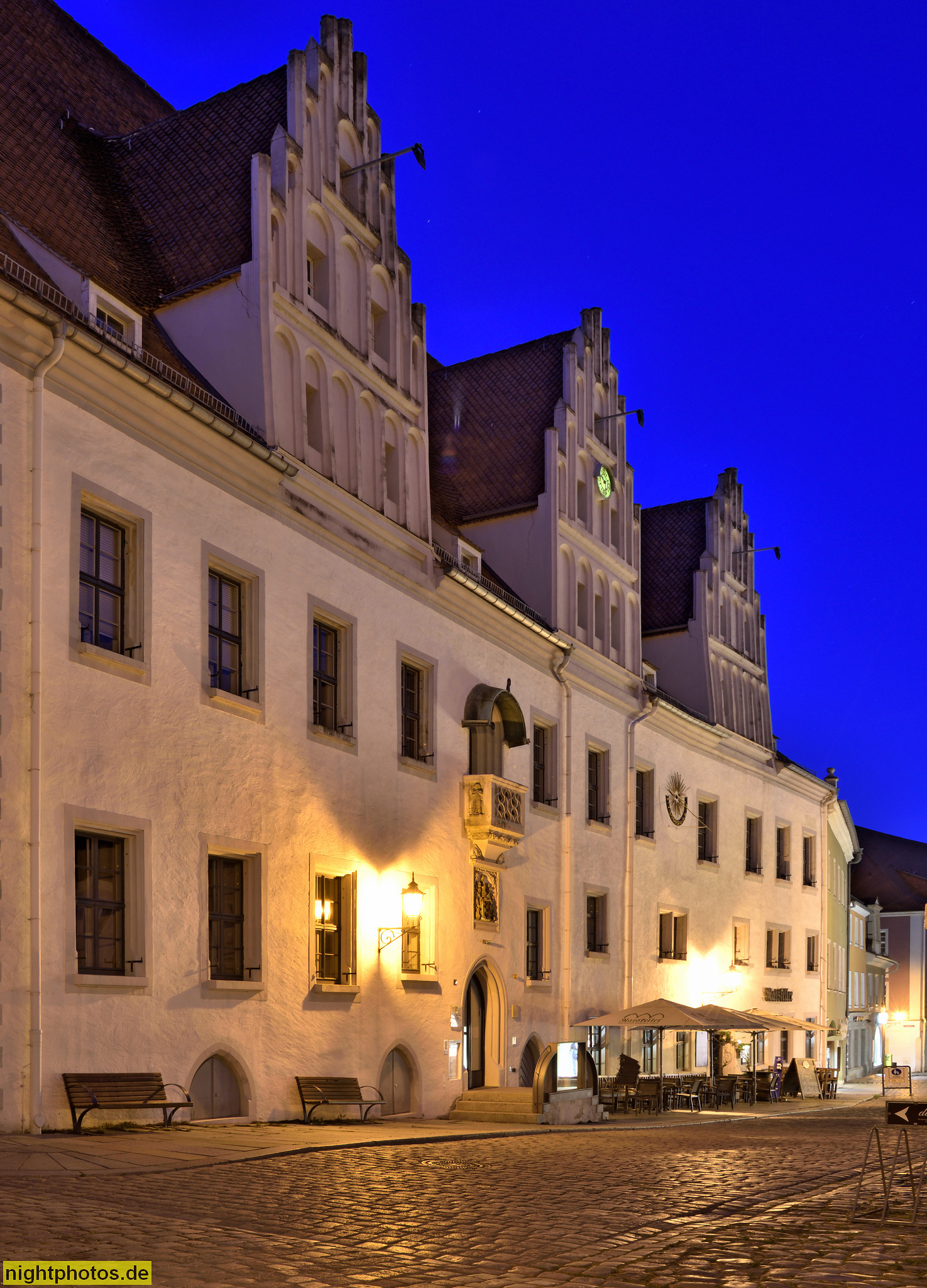 Meißen Rathaus. Spätgotisch erbaut 1472-1480 unter Mitwirkung von Arnold von Westfalen als kursächsischer Landesbaumeister. Spitzbogenportal. Balkon mit Masswerk. Markt 1