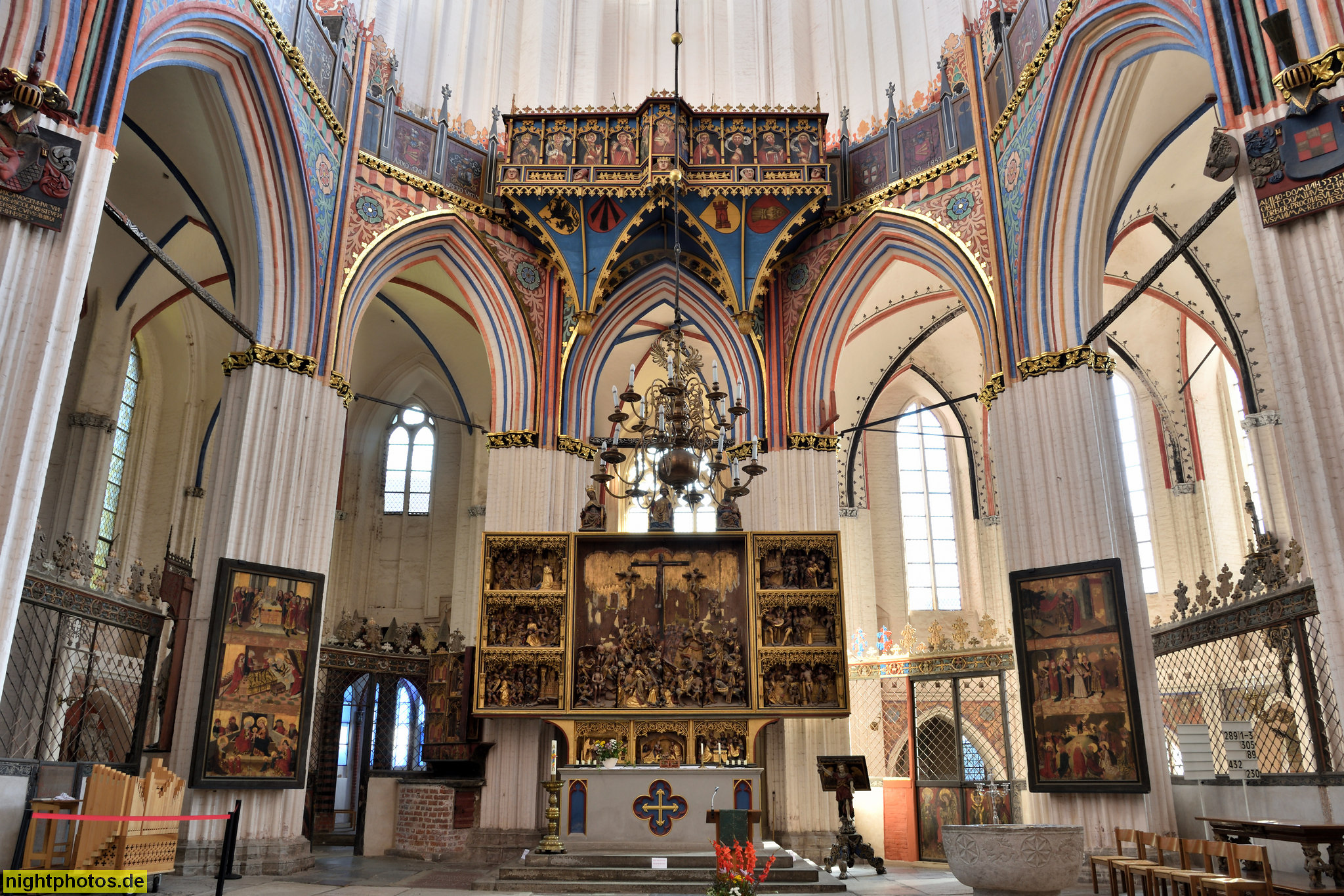 Stralsund. Altstadt. St.-Nikolai-Kirche erbaut 1270-1350. Altarraum mit Hochaltar erschaffen 1480 in Stralsund
