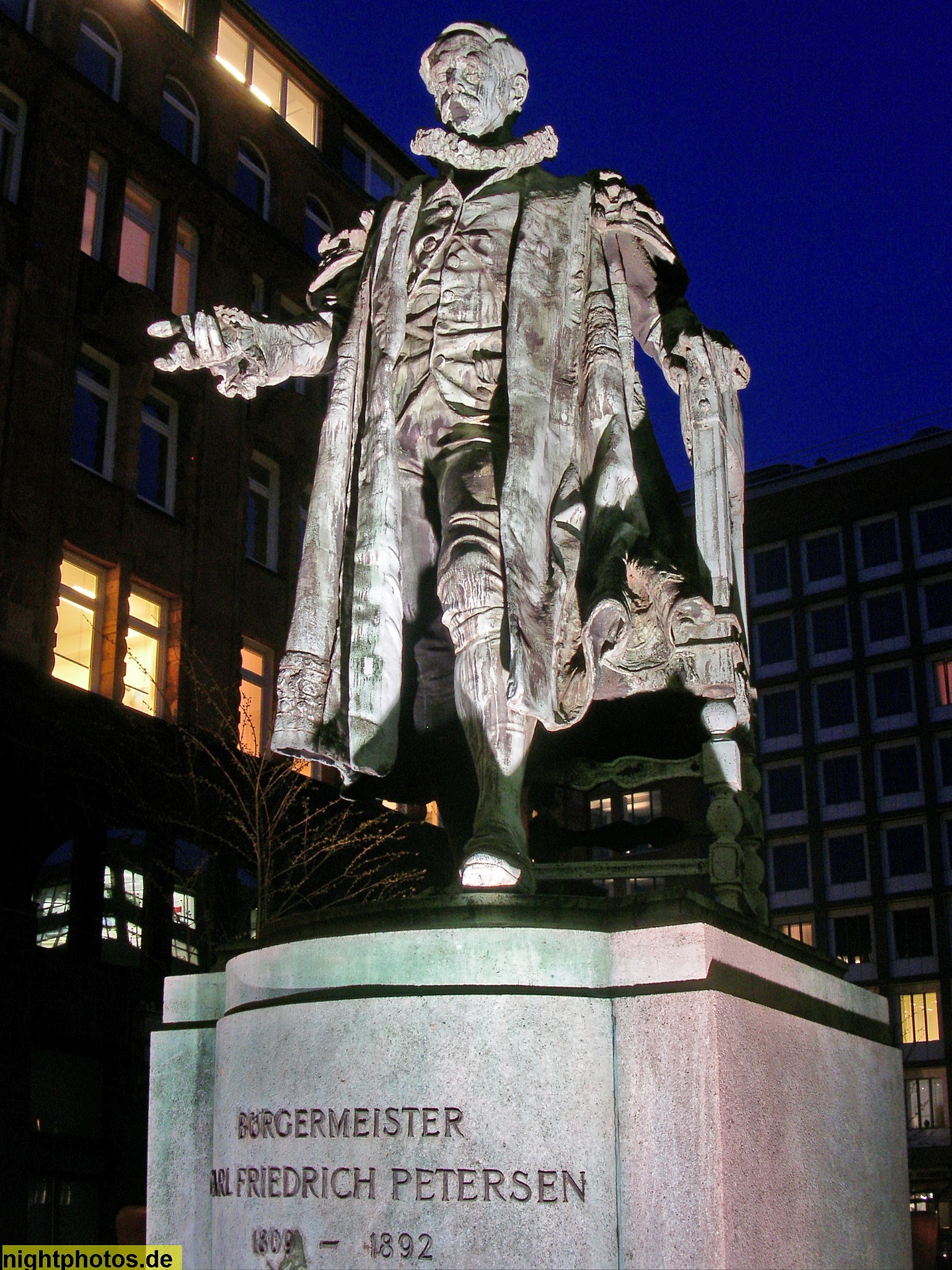 #1892 #abendstimmung #angestrahlt #architecture #architektur #bild #blaue stunde #bronze #building #bürgermeister von 1876-1892 #bürgermeisterplatz #carl friedrich petersen #city #denkmal #foto #fotografie #galerie #gallery #hamburg #historisch #illumination #nachtfoto #neuer wall #neustadt #photo #photography #poi #sehenswürdigkeit #statue