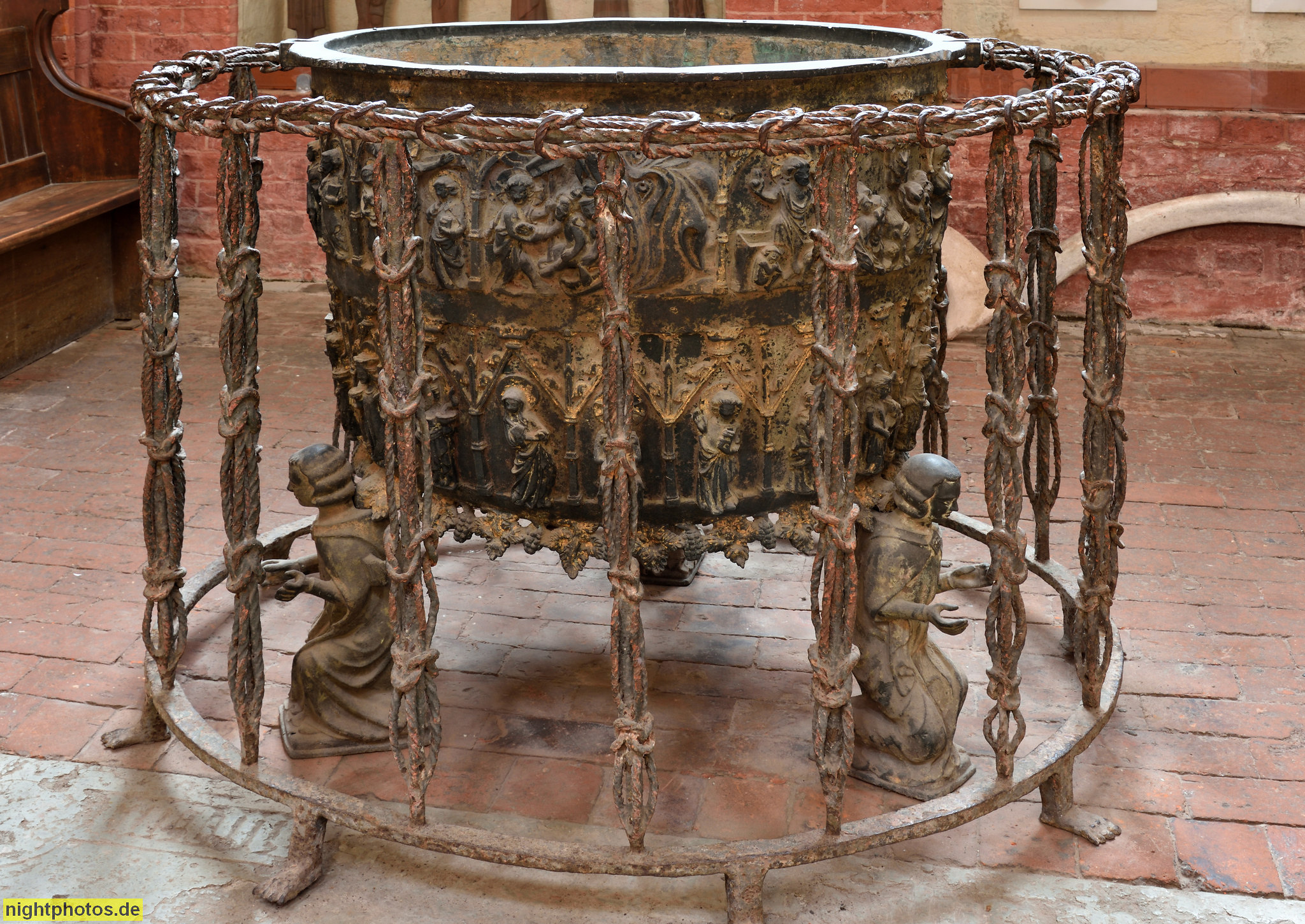 Wismar. St. Nikolai. Erbaut 1381-1487 als Kirche der Seefahrer und Fischer von Baumeister Heinrich von Bremen. Spätgotische Basilika. Taufbecken in Bronze von 1335