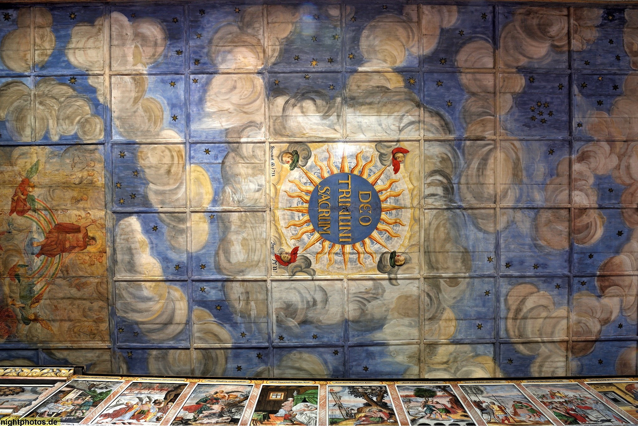 Deckeninschrift: "DEO TRINUNI SACRUM" = Dem dreieinigen Gott geweiht