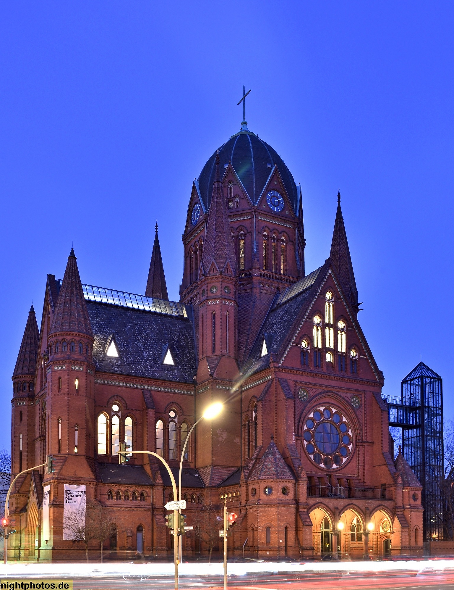 #abendstimmung #architecture #architektur #bauleitung robert kleinau #baumeister johannes otzen #bauwerk #berlin #bild #blaue stunde #blücherplatz #blücherstrasse #erbaut 1885-1888 #evangelisch #foto #fotografie #galerie #gallery #gebäude #gotisch #heilig-kreuz-kirche #historisch #illumination #klinker #kreuzberg #modernisiert 1995 #nachtfoto #passionsgemeinde #photo #photography #rosettenfenster #ziegelbau #zossener strasse