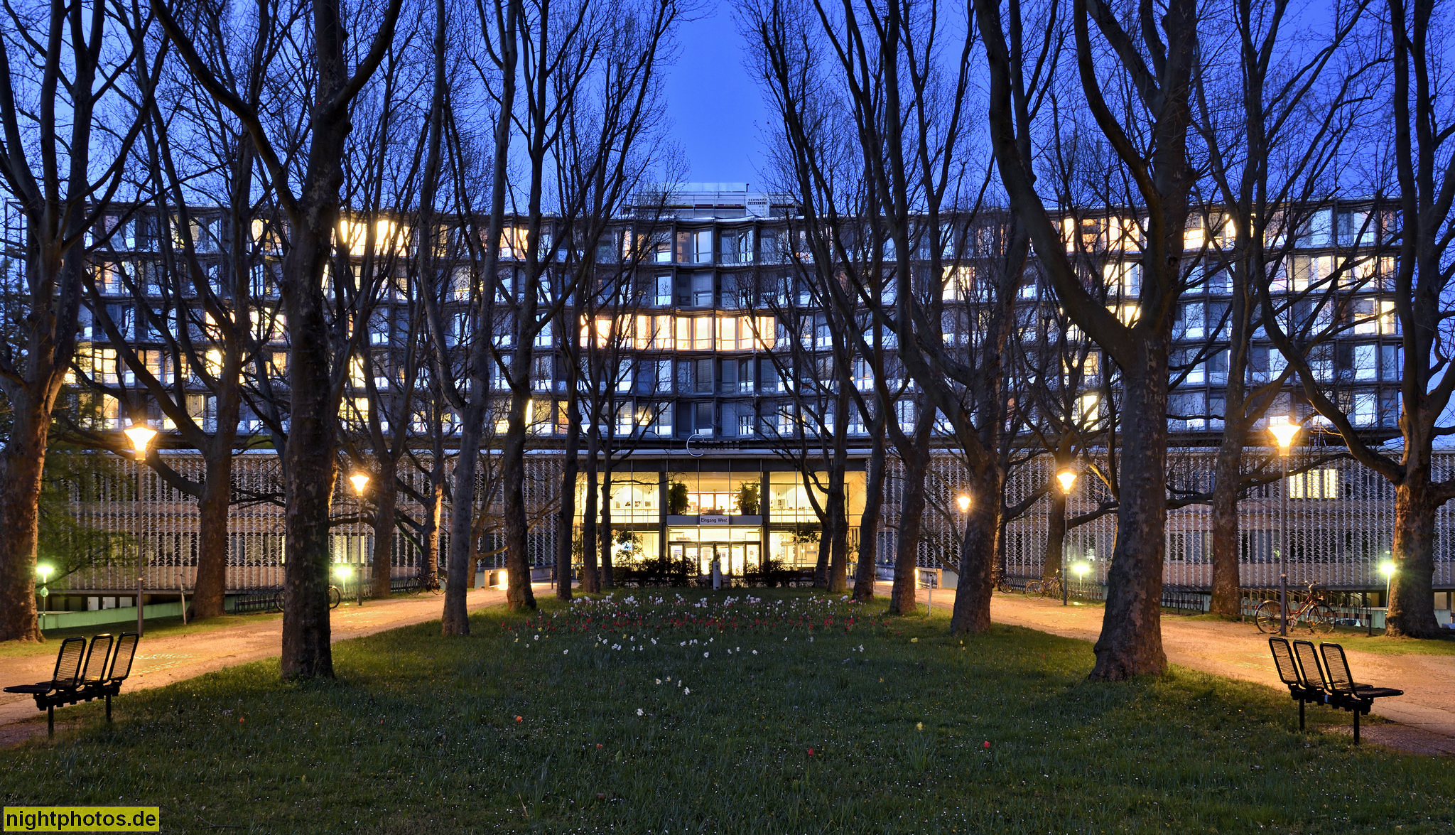 Info im Klinikum: 'Die Benjamin-Franklin-Stiftung erteilte dem in New Orleans ansässigen Architektenbüro Curtis und Davis den Auftrag. Statthalter vor Ort war der Berliner Architekt Franz Mocken (1913-1973). Er hatte bereits an der Gestaltung der Berliner Kongresshalle (heute: Haus der Kulturen der Welt) mitgewirkt, die ebenfalls von der Stiftung finanziert und errichtet worden war. Nathaniel Cortlandt Curtis Jr (1917-1997) und auch Arthur Quentin Davis (1920-2011) hatten in den 1940er Jahren an der Tulane University in New Orleans ihr Architekturstudium abgeschlossen. Davis wechselte anschliesend nach Harvard, wo er auch u.a. auch mit Walter Gropius zusammen arbeitete.' Info at location (translated by DeepL): The Benjamin Franklin Foundation awarded the contract to the New Orleans-based architectural firm Curtis and Davis. The on-site construction manager was the Berlin architect Franz Mocken (1913-1973). He had already worked on the design of the Berlin Congress Hall (now the House of World Cultures), which had also been financed and built by the Foundation. Nathaniel Cortlandt Curtis Jr (1917-1997) and also Arthur Quentin Davis (1920-2011) had graduated in architecture from Tulane University in New Orleans in the 1940s. Davis then moved to Harvard, where he also worked with Walter Gropius, among others.