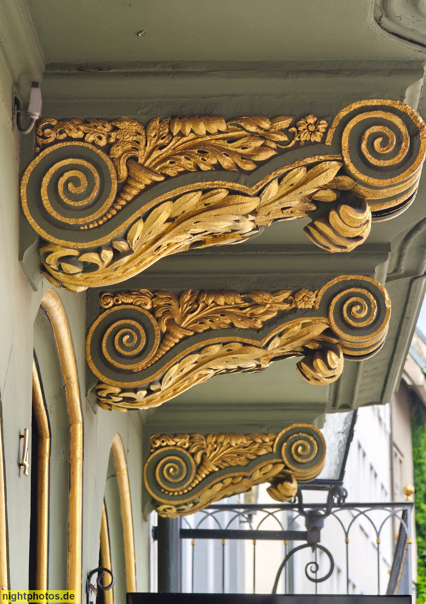 Inschrift: AMDG Im Jahre d H 1905 ward dieses Haus, welches ursprünglich aus zwei bis ins 14 Jahrhundert zurückreichenden Häusern bestand und i J 1739 in den Besitz der Familie Krebs kam, von Grund auf erneuert.