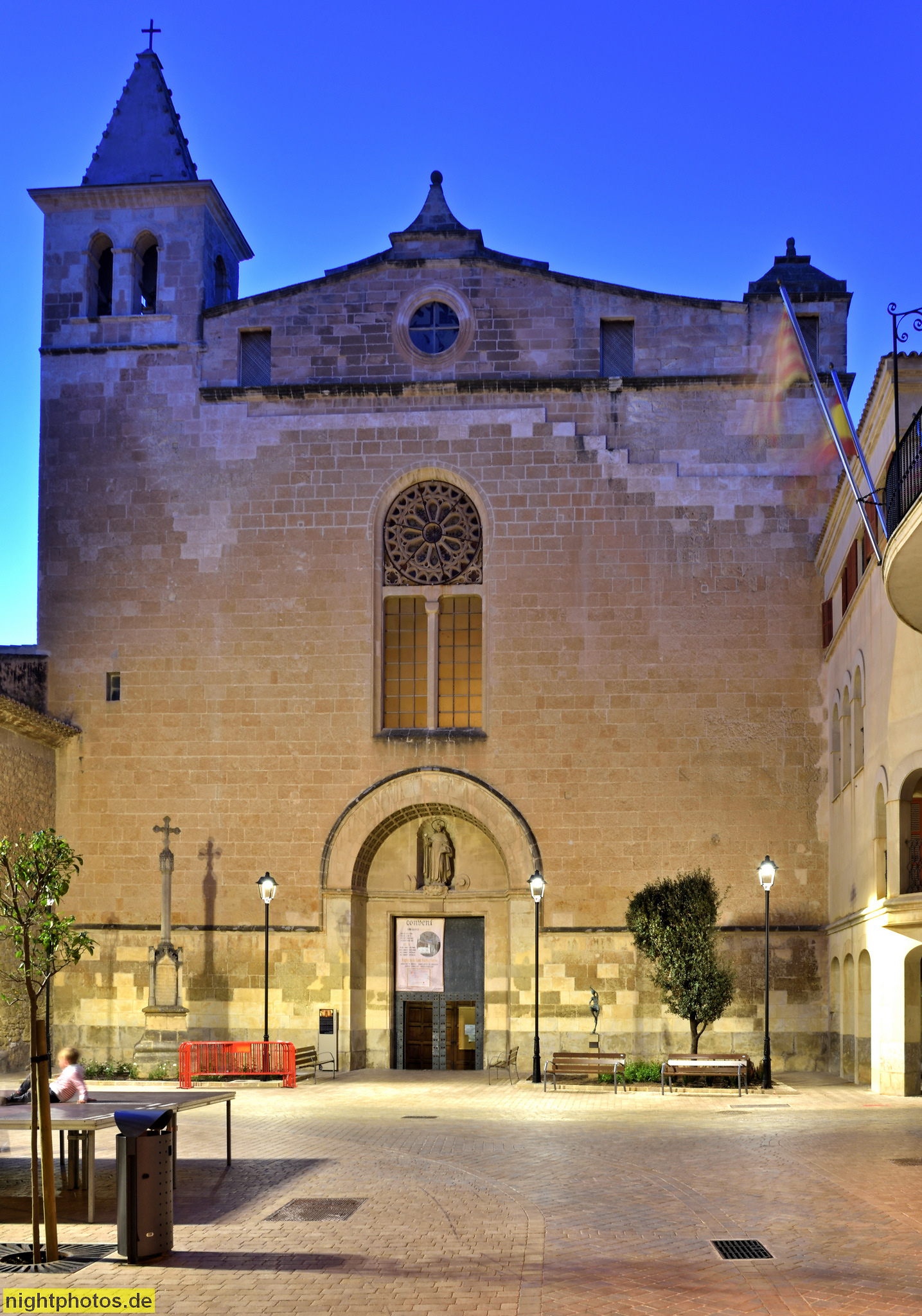 Mallorca Manacor Domikaner Klosterkirche Sant Vicenc de Ferrer erbaut 1597-1617. Bodenmosaik mit Stadtwappen 'Man a Cor' = Hand am Herz