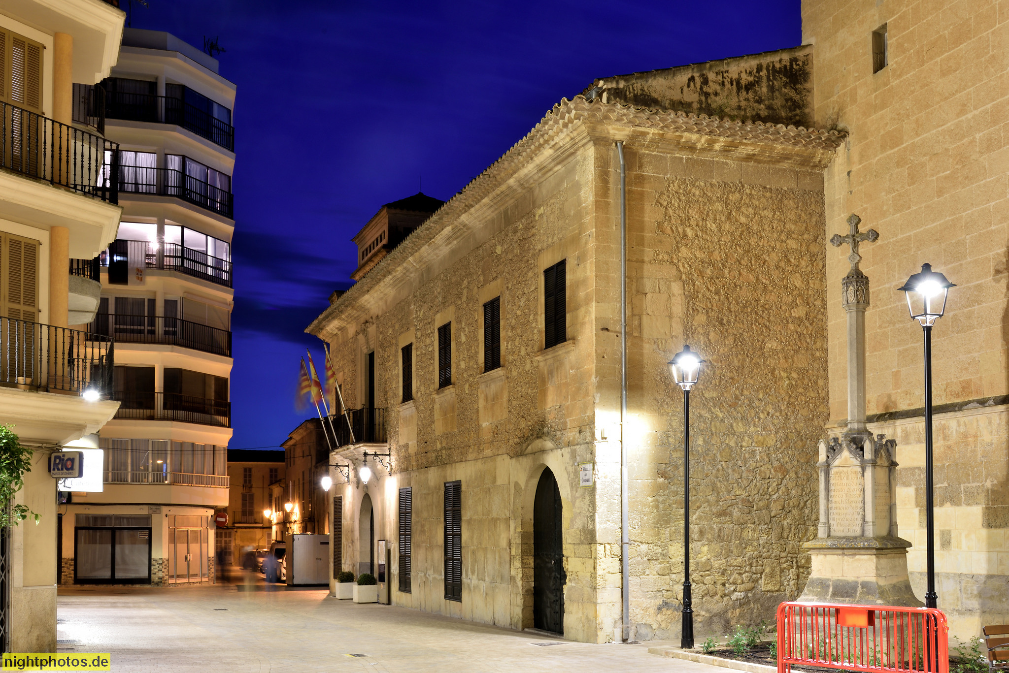Das Wappen der Stadt Manacor visualisiert ein Wortspiel mit dem Ortsnamen "Man a Cor" => Hand am Herz. The heraldic figure of the city of Manacor visualizes a pun with the name of the city "Man a Cor" => hand at heart.