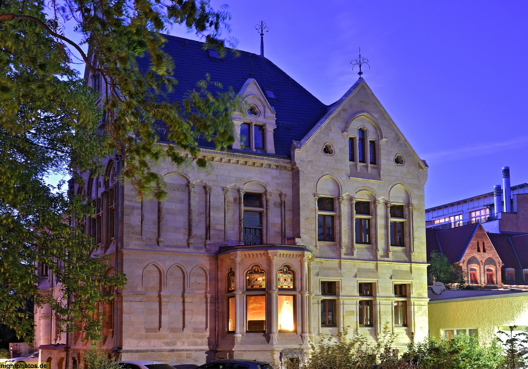 #abendstimmung #architecture #architektur #bauherr kohlefabrikant list #baumeister g l möckel #bauwerk #bild #blaue stunde #building #dr-friedrichs-ring 4 #erbaut 1868-1870 #erker #fensterverdachung #foto #fotografie #fries #galerie #gallery #gebäude #gesims #historisch #illumination #nachtfoto #neogotisch #photo #photography #sandsteinfassade #säulen #spitzgiebel #zwickau