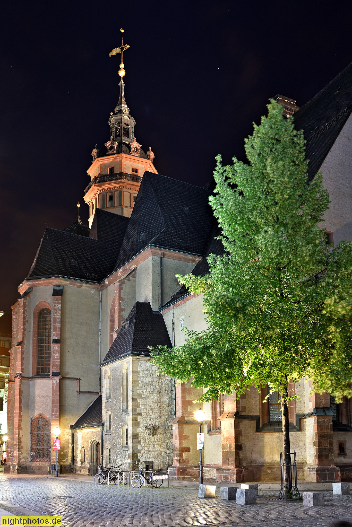 Leipzig Nikolaikirche. Erstbau 1170 romanisch. Umbau zur spätgotischen Hallenkirche im 15. und 16. Jhdt. Heutiger Innenraum von Stadtbaumeister Johann Friedrich Carl Dauthe 1784-1797. Uraufführungen von Johann Sebastian Bach. Ausgangspunkt der friedlichen