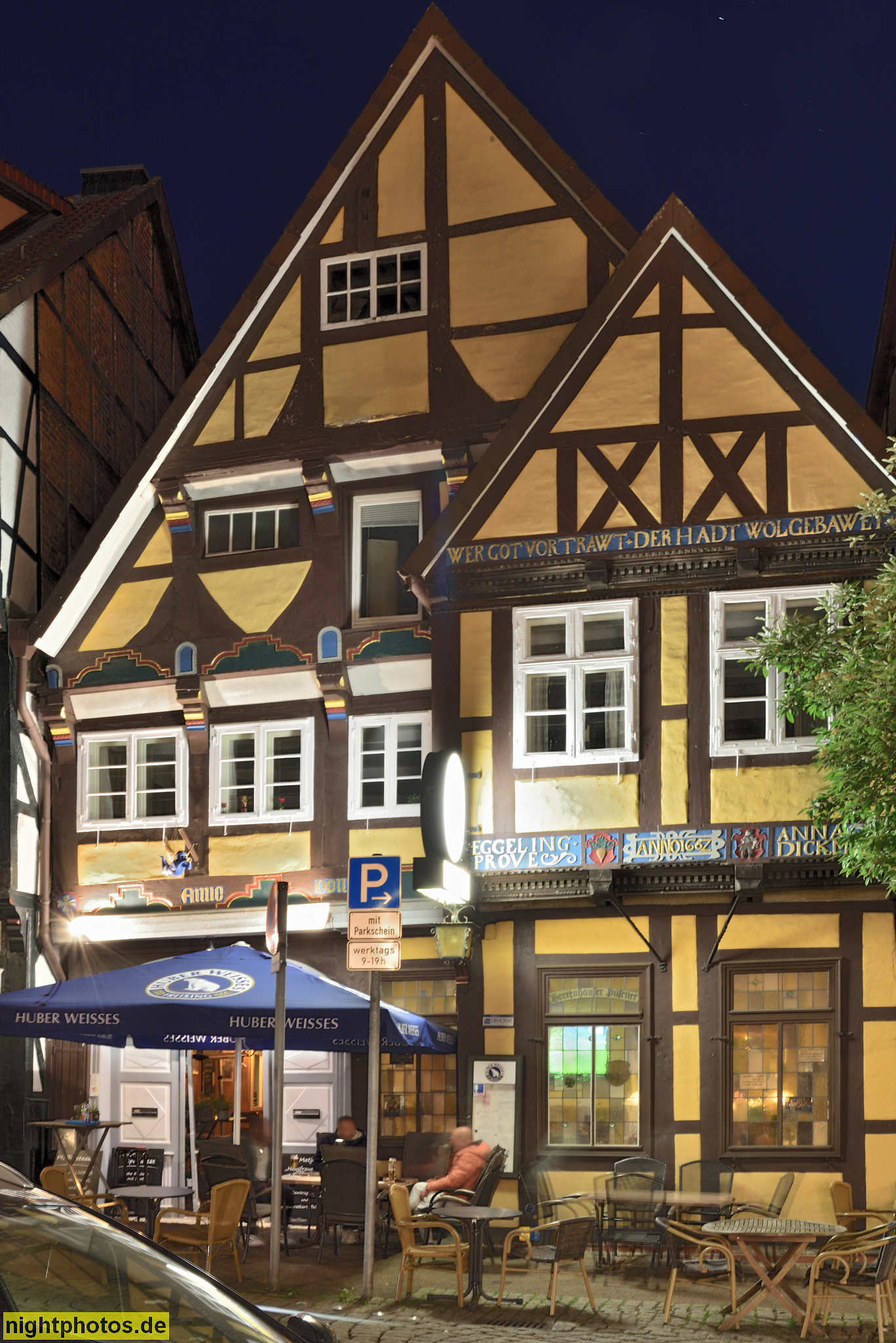 Celle. Altstadt. Fachwerk mit Standerker. Erbaut 1540. Restaurant 'Zum blauen Engel'. Kleiner Plan 7
