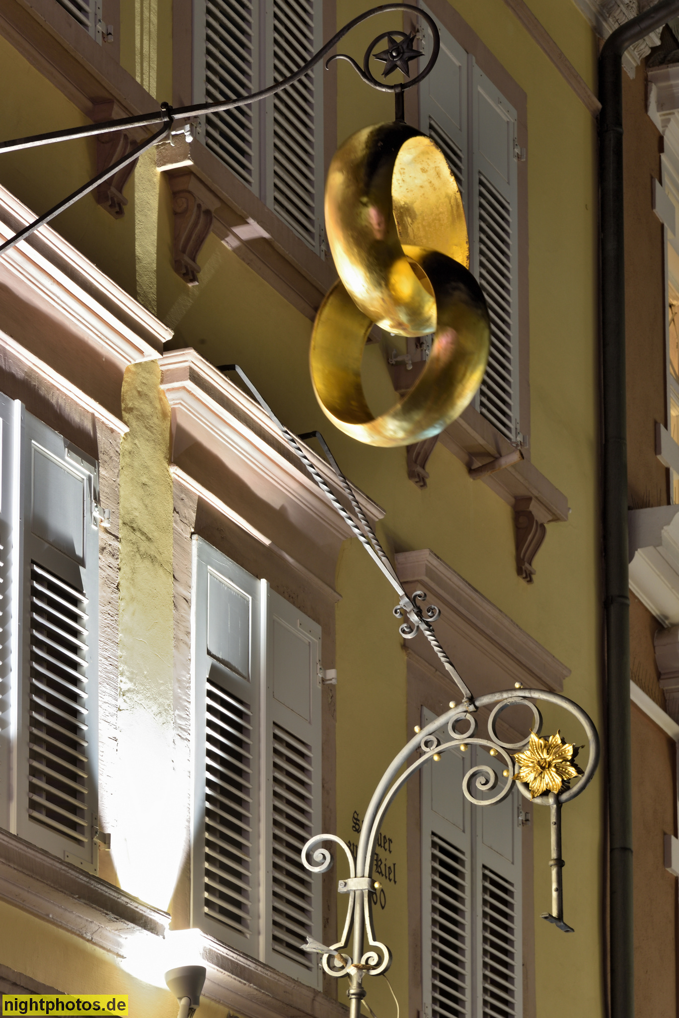 Freiburg. Wohn- und Geschäftshaus. Haus zum Kiel erbaut 1460. Juwelier Seilnacht. Werbeschild. Rathausgasse 7