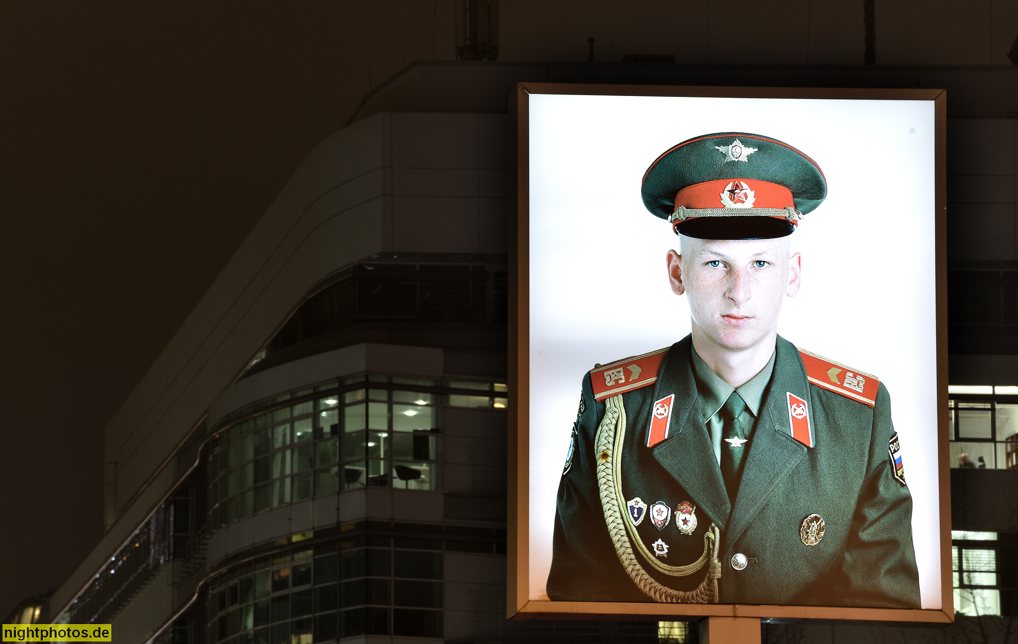 #abendstimmung #abzeichen #architecture #architektur #bauwerk #berlin #bild #blaue stunde #building #checkpoint charlie #dekoriert #foto #fotografie #friedrichstrasse 206 #galerie #gallery #gebäude #grenzsoldat #historisch #illumination #kreuzberg #nachtfoto #orden #photo #photography #sowjetisch #uniform