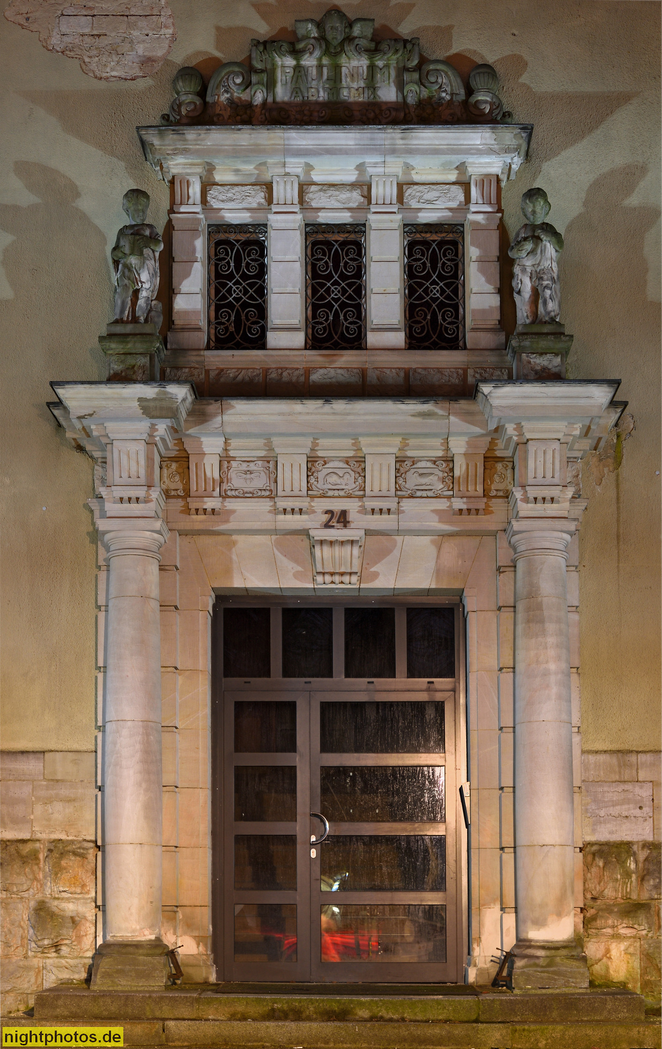 #abendstimmung #architecture #architekt karl kujath #architektur #baudenkmal #bauwerk #berlin #bild #blaue stunde #building #dahlem #erbaut 1907-1909 #erziehungsanstalt für jungen #foto #fotografie #galerie #gallery #gebäude #historisch #kinderfigur #nachtfoto #oberbaurat oskar delius #oskar delius #otto-hahn-platz #paulinum #photo #photography #reichensteiner weg 24-26 #renaissanceportal #toskanische säulen #triglyphenfries #zehlendorf