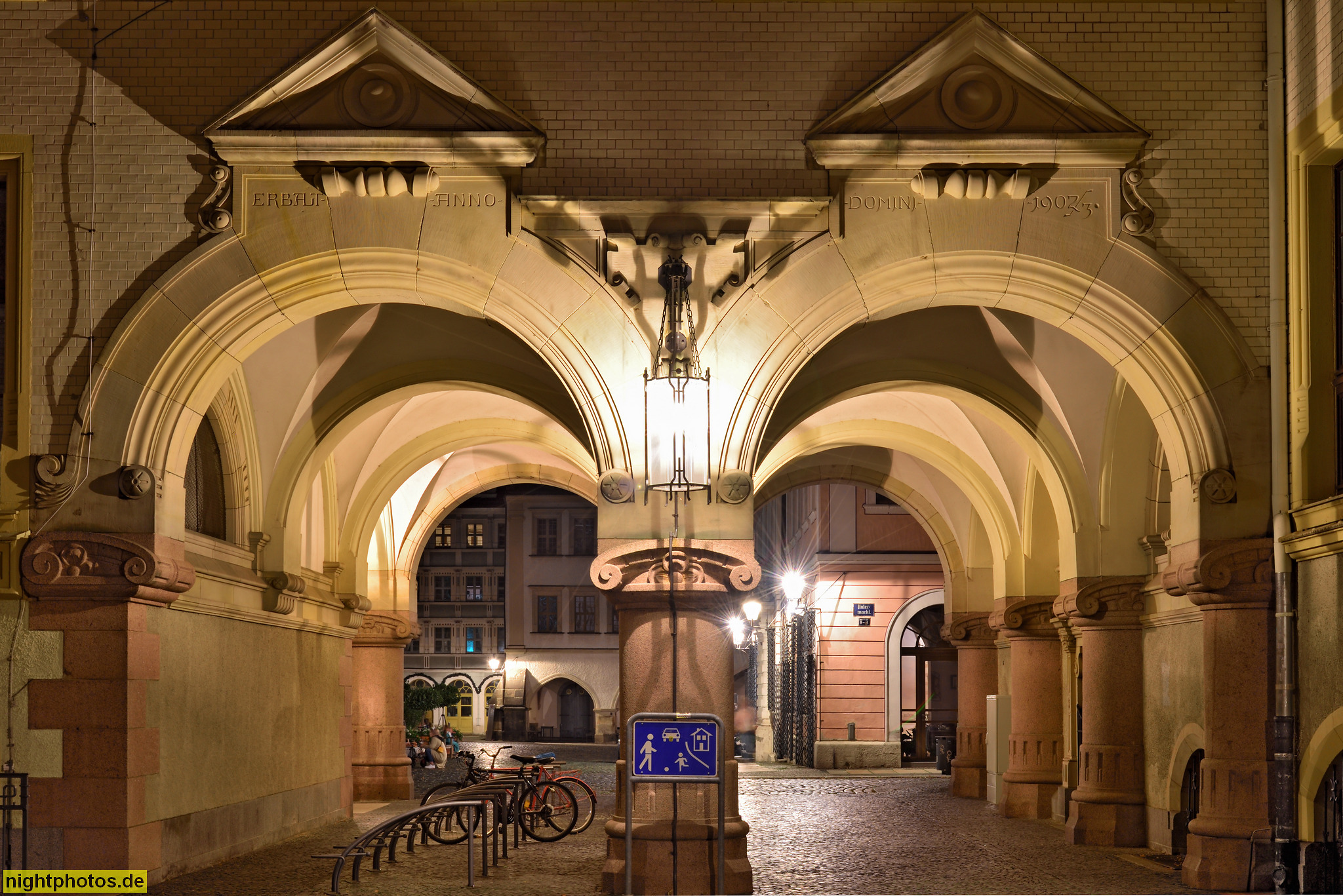 Görlitz. Neues Rathaus erbaut 1902-1903 vom Berliner Büro Abesser und Kröger mit Neorenaissance Fassade am Untermarkt 18. Kreuzgratgewölbe unter Arkaden