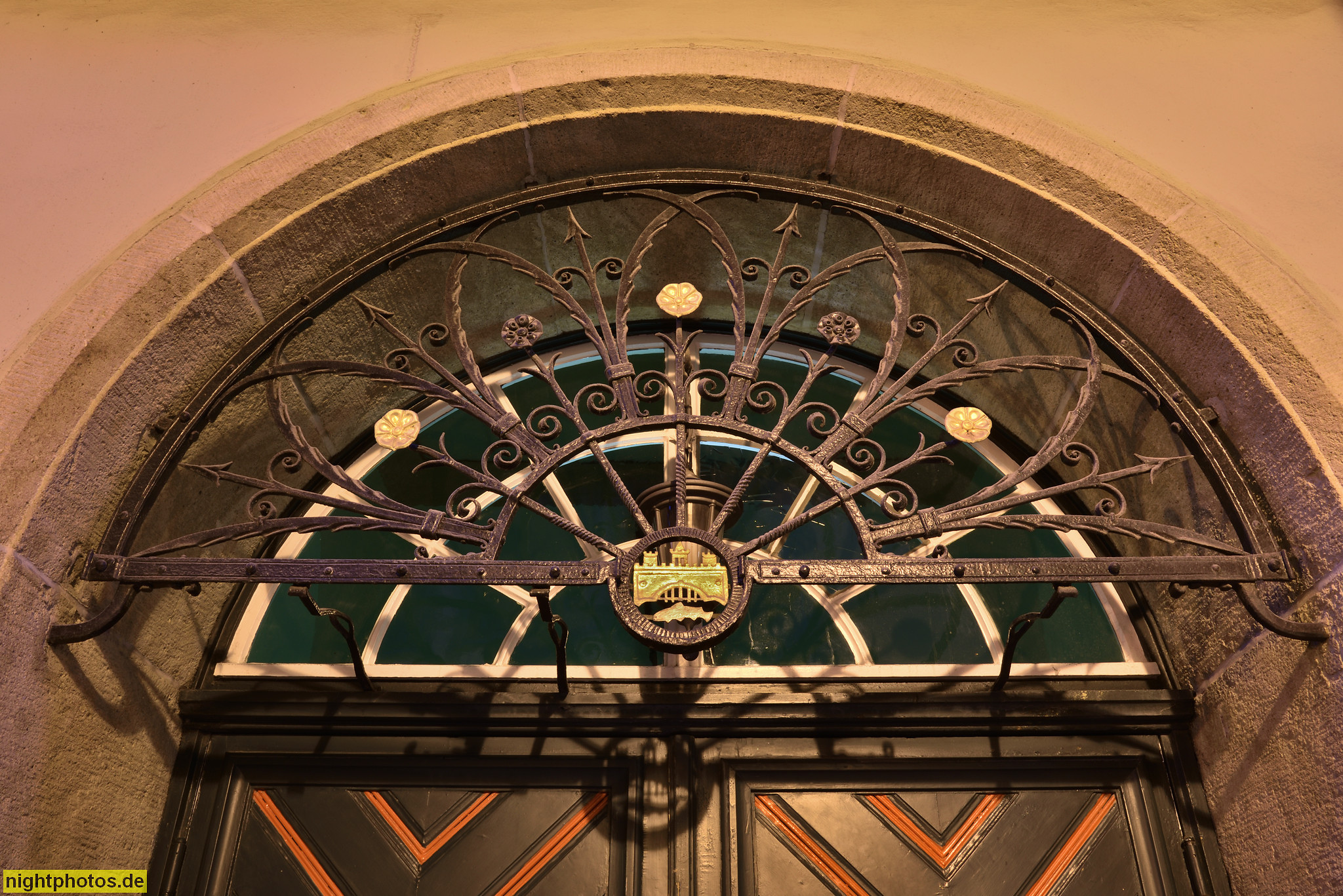 Wernigerode. Rathaus. Schmiedeeisern vergittertes Oberlicht am Seiteneingang
