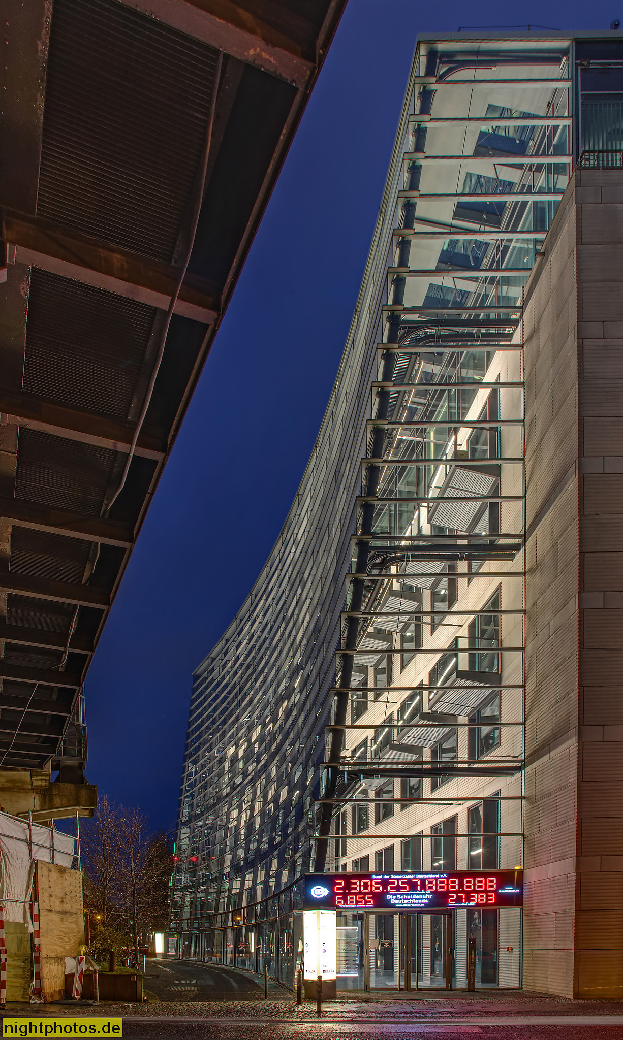 Bild entstand lange nach Sonnenuntergang. Helles Licht von der Beleuchtung der Zufahrt zum Marie-Elisabeth-Lüders-Haus. Picture taken late after sunset. Bright light shining from illumination of the driveway to the Marie-Elisabeth-Lüders-Haus.