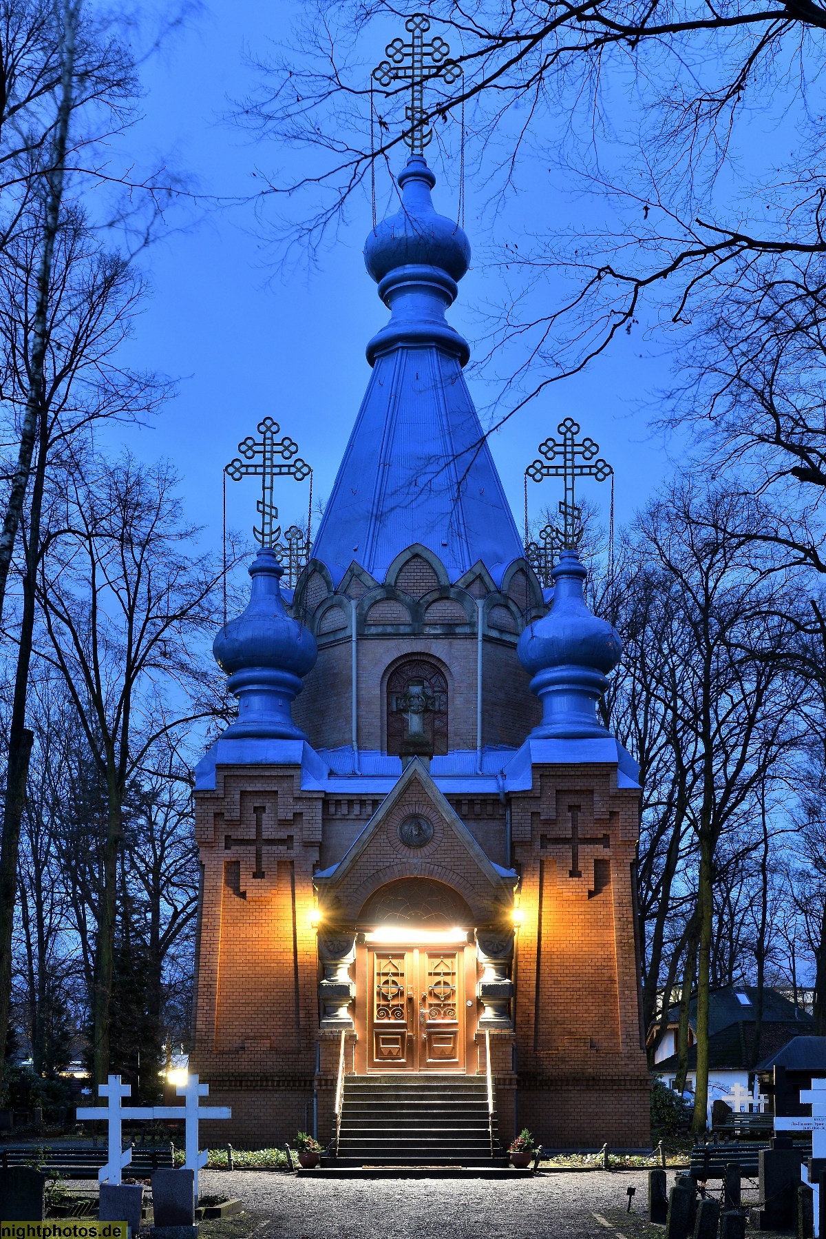 #abendstimmung #angestrahlt #architecture #architektur #bauwerk #berlin #bild #blaue stunde #bruderschaft des heiligen fürsten wladimir #building #erbaut 1893-1894 #erzpriester alexei malzew #foto #fotografie #galerie #gallery #gebäude #historisch #illumination #nachtfoto #photo #photography #postament #reinickendorf #russischer friedhof #säulenheiliger #skulptur #sockel #st-konstantin-und-helena-kirche #standbild #statue #tegel #toga #wittestrasse 37