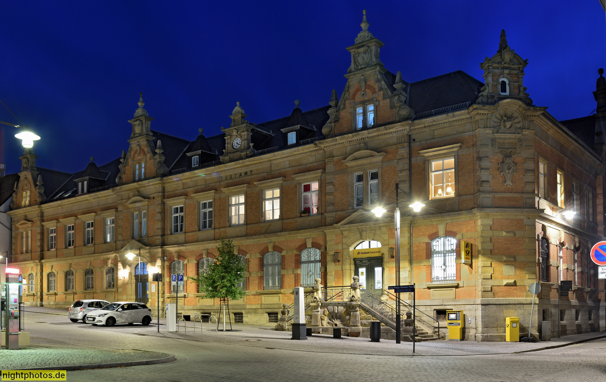 Eisenach. Hauptpostamt erbaut laut Fassadeninschrift 1885 im Renaissancestil mit Eckquaderung. Markt 16