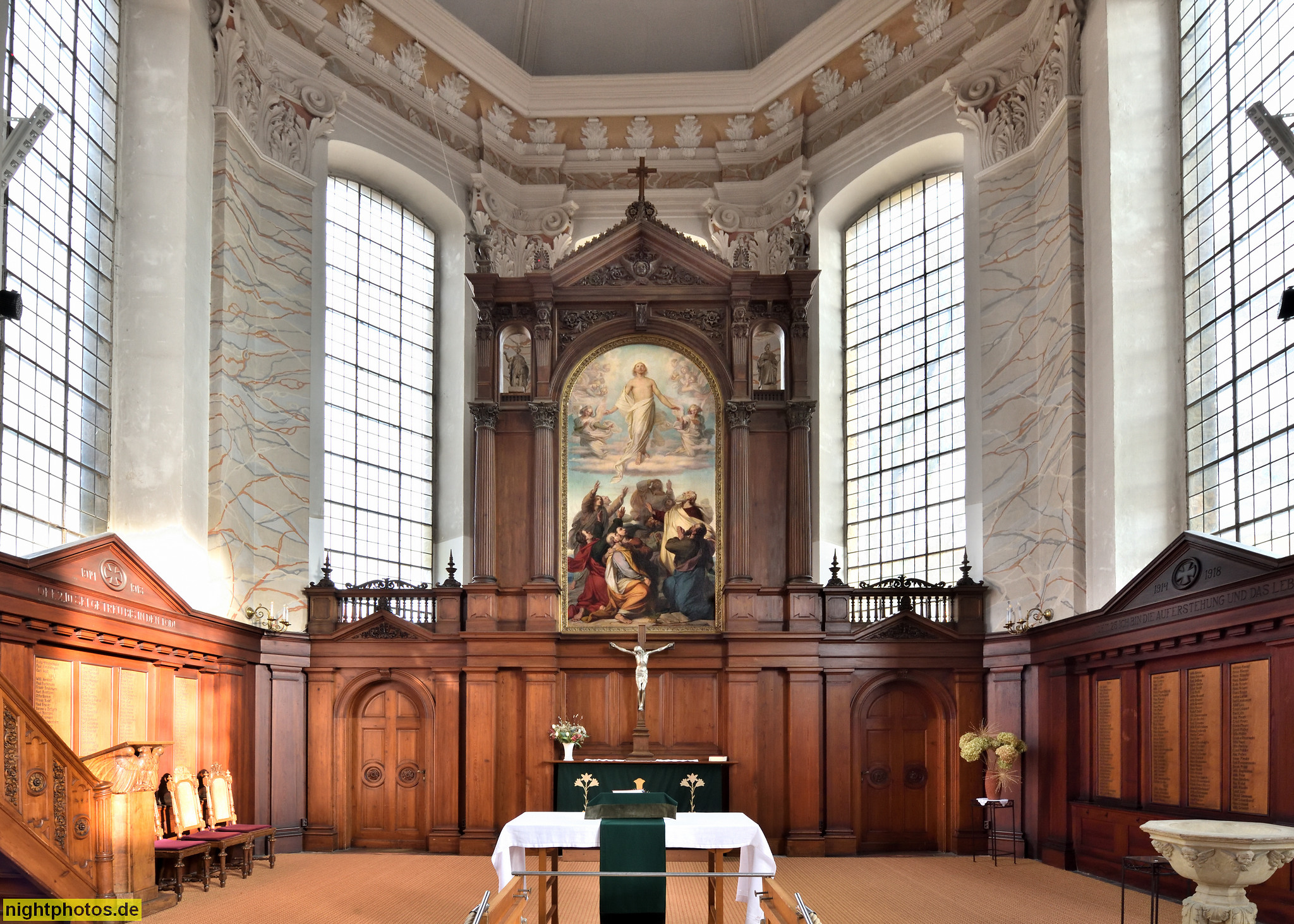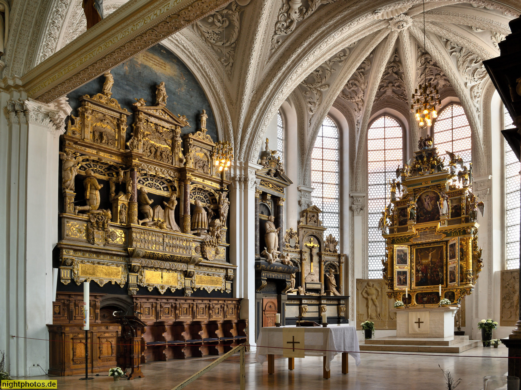 Celle. Altstadt. Stadtkirche St. Marien. Erbaut 1292-1308. Umbau Barock 1676-1698. Altar erschaffen von Werkstatt Jürgen Röttgers. Gestiftet von Herzog Christian 1613