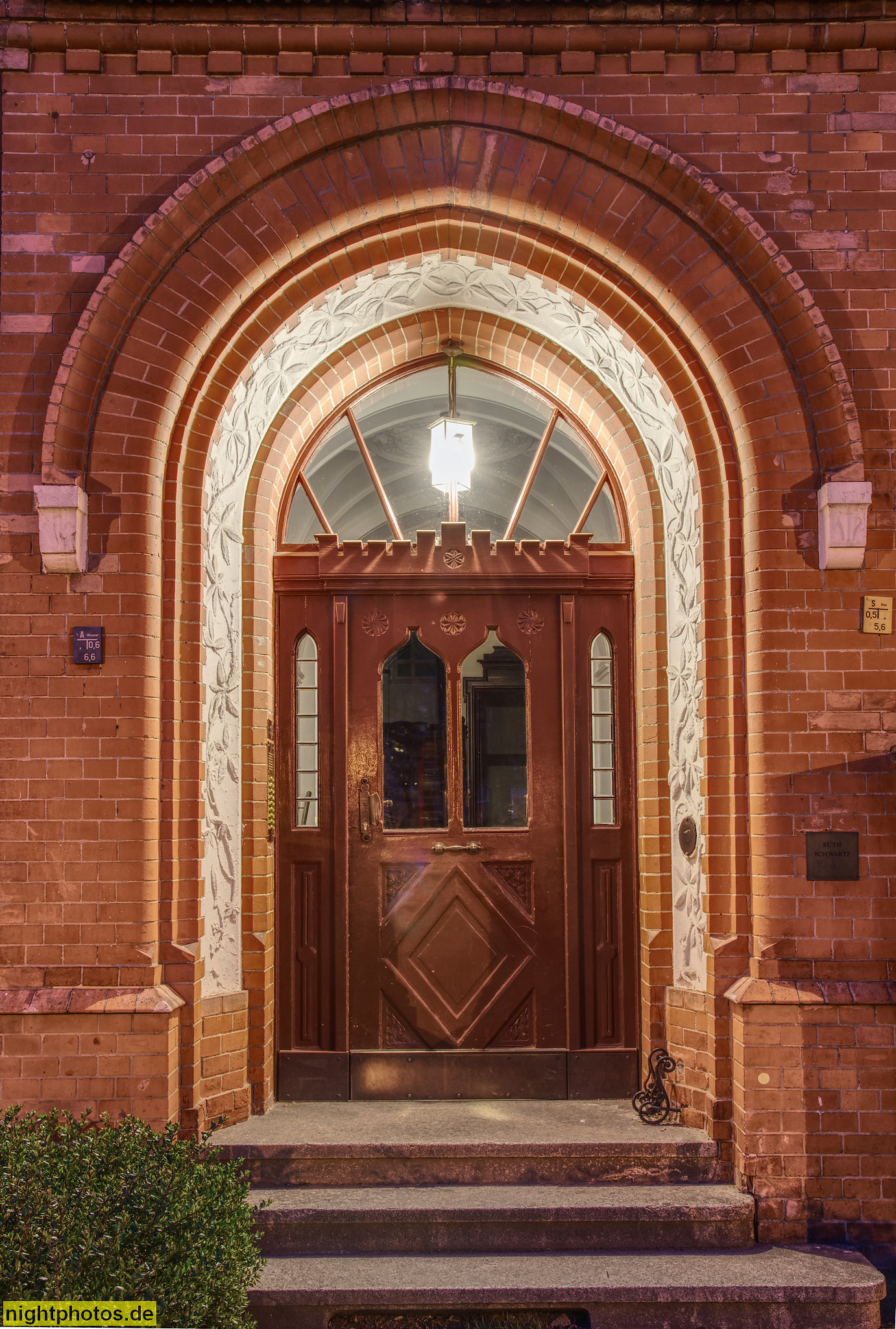 Inschrift oben: Hut-Haus Janke 1905 Inschrift unten: Tue recht. Schaffe gut Und stell' Dein Haus in Gottes Hut.