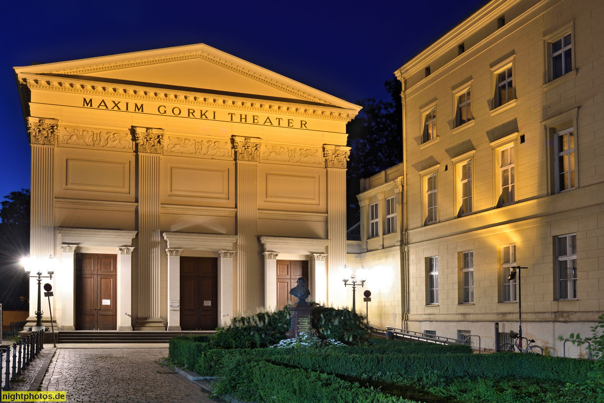 #abendstimmung #angestrahlt #architecture #architekt carl theodor ottmer #architekt karl friedrich schinkel #architektur #bauherr sing-akademie zu berlin #bauwerk #berlin #bild #blaue stunde #building #carl friedrich zelter #dorotheenstadt #dreiecksgiebel #erbaut 1825-1827 #foto #fotografie #galerie #gallery #gebäude #historisch #illumination #kanelliert #klassizismus #klassizistisch #korinthische kolossalpilaster #maxim-gorki-theater #mitte #nachtfoto #photo #photography #poi #reliefs #sehenswürdigkeit #stifter carl friedrich christian fasch #tympanon #zahnfries