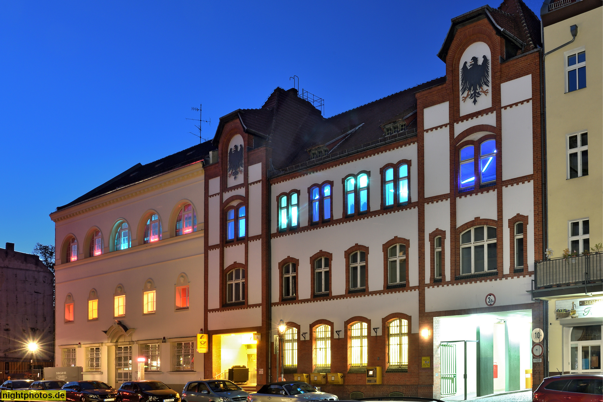 #abendstimmung #adlerwappen #architecture #architekt aufstockung karl buddeberg #architekt erweiterung edmund beisel #architekt hermann valtink #architektur #aufstockung 1913-1914 #backstein #bauwerk #berlin #bild #building #dienstgebäude #erbaut 1899-1901 #erweiterung 1921-1923 #festival of lights #foto #fotografie #galerie #gallery #gauben #gebäude #grussdorfstrasse 3-4 #historisch #illumination #lichtfestival #lichtinstallation #lichtkunst #nachtfoto #photo #photography #postamt #postverkehr #seitenrisalit #tegel #teilverputzt #ziegelbau
