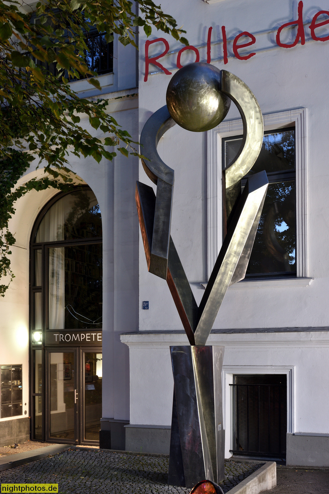 Berlin Mitte Tiergarten Haus am Lützowplatz. Erbaut als Wohnhaus 1873 von Wilhelm Neumann. Wiederaufbau 1950. Skulptur 'Tangentiale Berührung' von Volkmar Haase 1988
