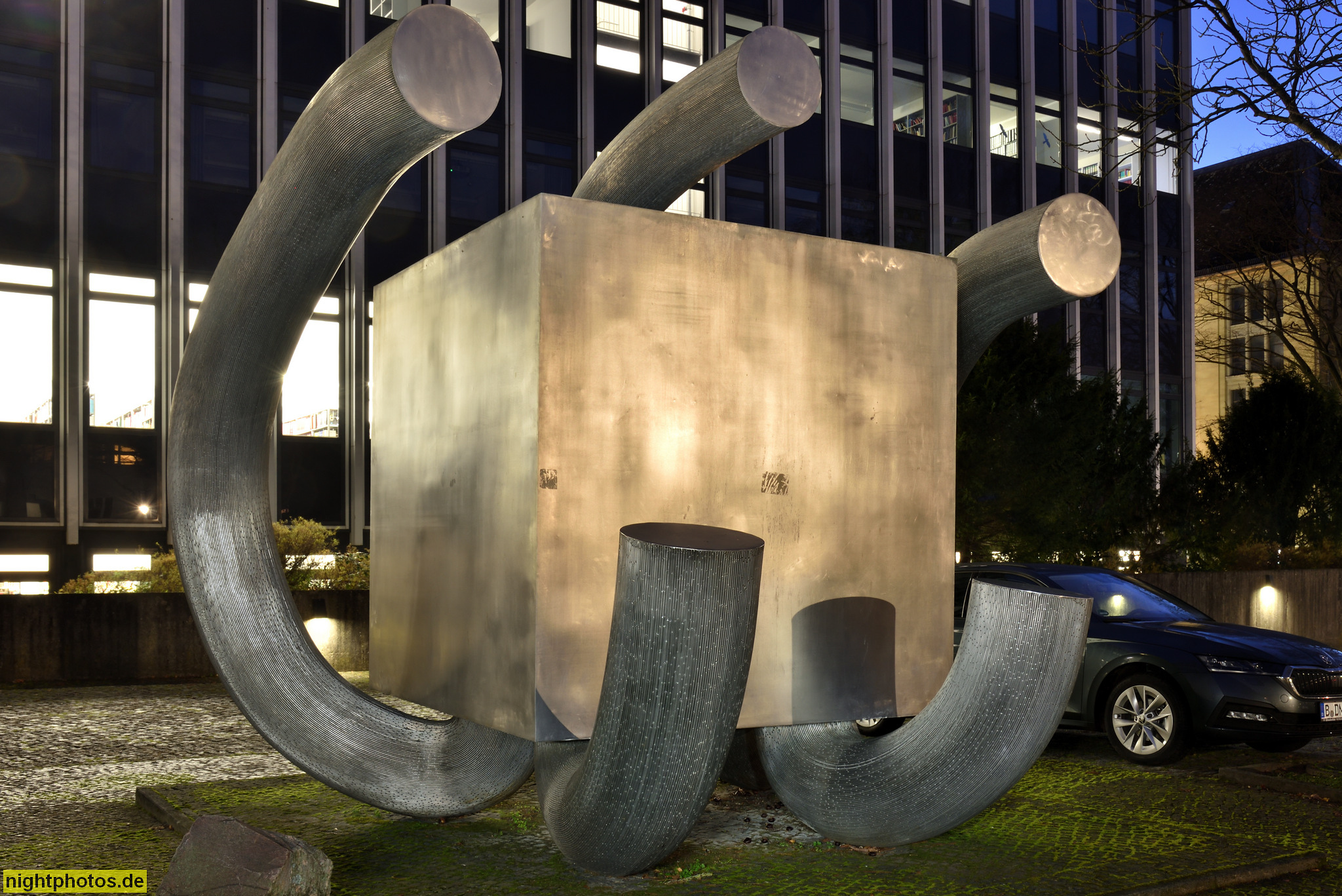 Berlin Dahlem Freie Universität Henry-Ford-Bau erbaut 1952-1954 von Sobotka und Müller. Skulptur 'Perspektiven' von Volker Bartsch 2006-2007