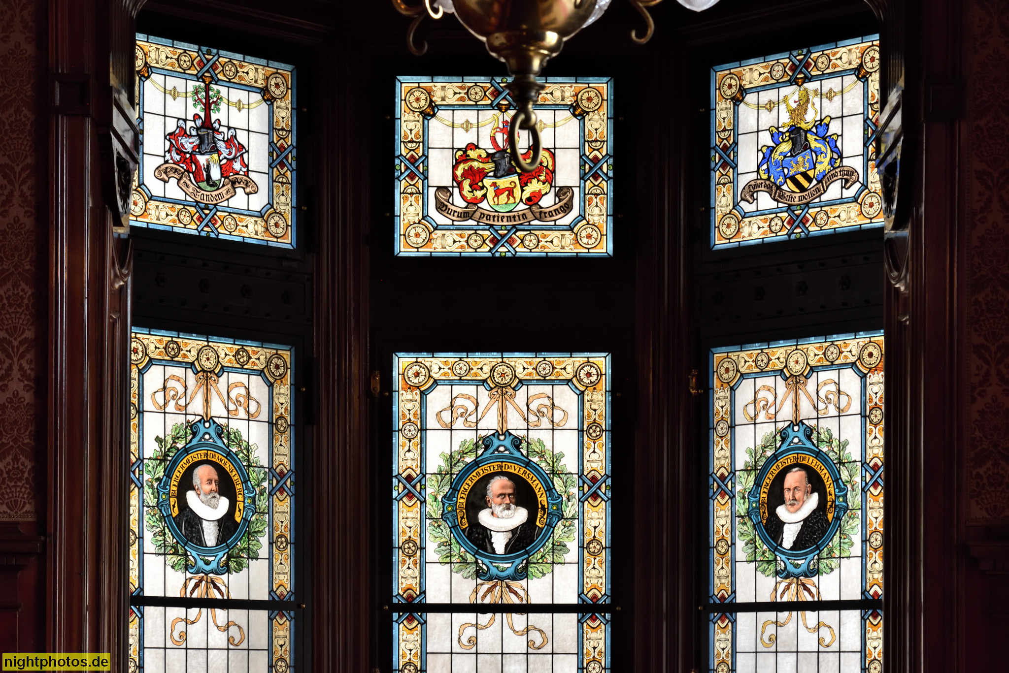 Inschriften Glasmalerei "Buergermeister Dr Moenkeberg" "Buergermeister Dr Versmann" "Buergermeister Dr Lehmann"