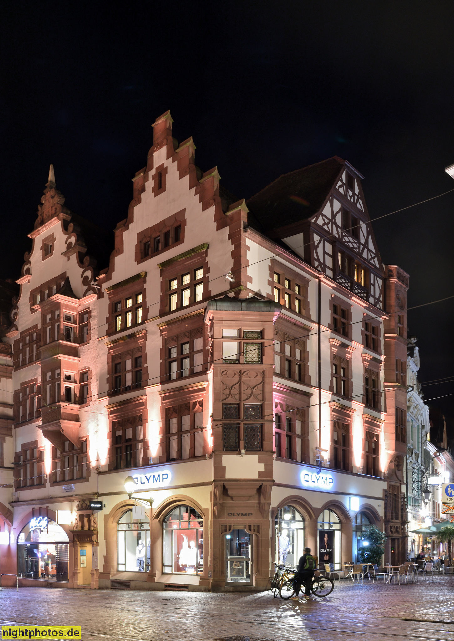 Freiburg. Historisches Kaufhaus. Erbaut 1520-1532 v Lienhart Müller. Rundbogenarkaden. Eckerker. Standbilder v Habsburgerkaisern. Speicherdach. Münsterplatz 24
