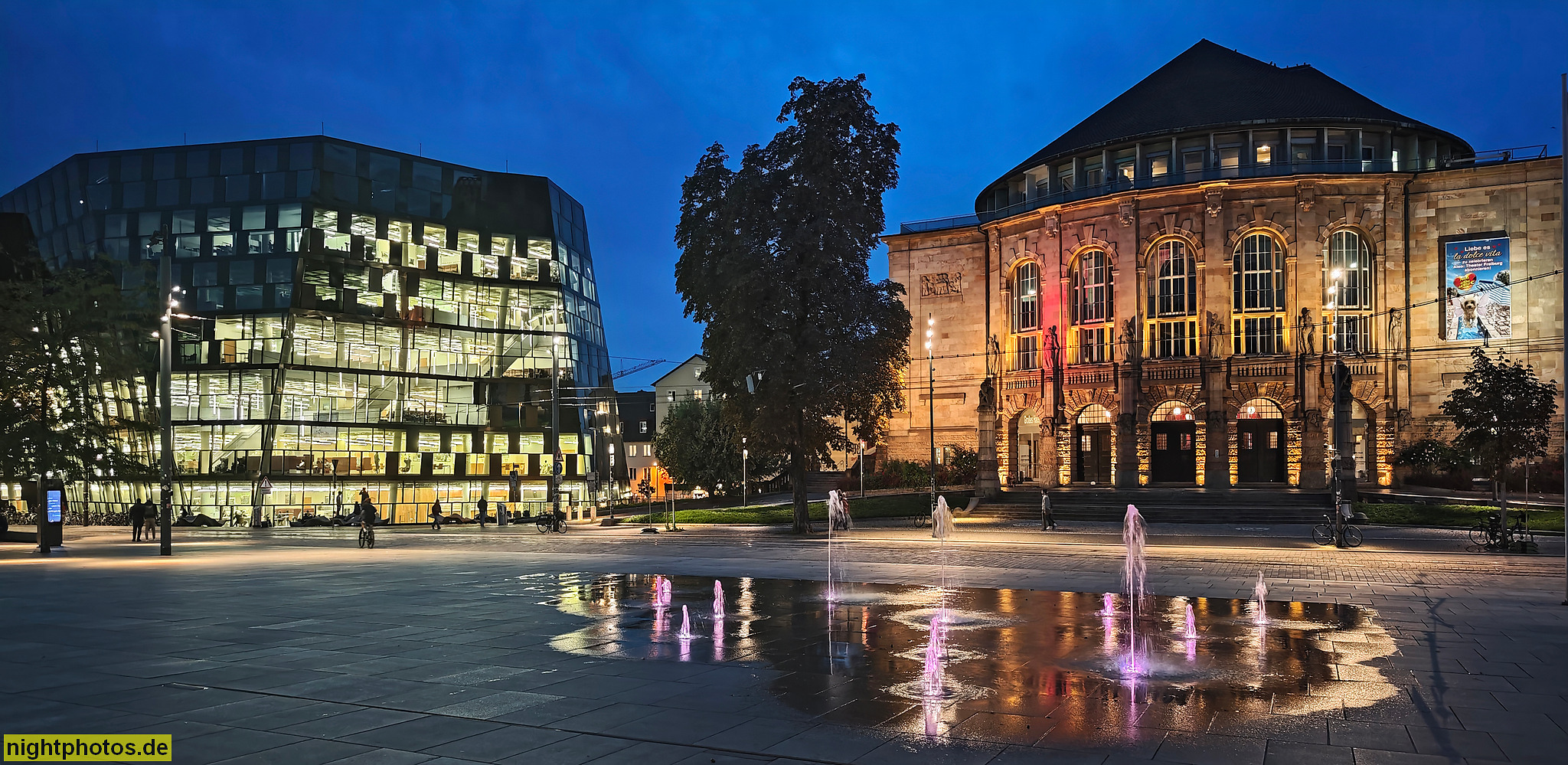 Freiburg. Augustinerplatz. Wohnhaus als ehem. Unteres Spital (Gerberau 34). Museum für Völkerkunde erbaut 1855-1856 von Stadtbaumeister Straub (Gerberau 32)