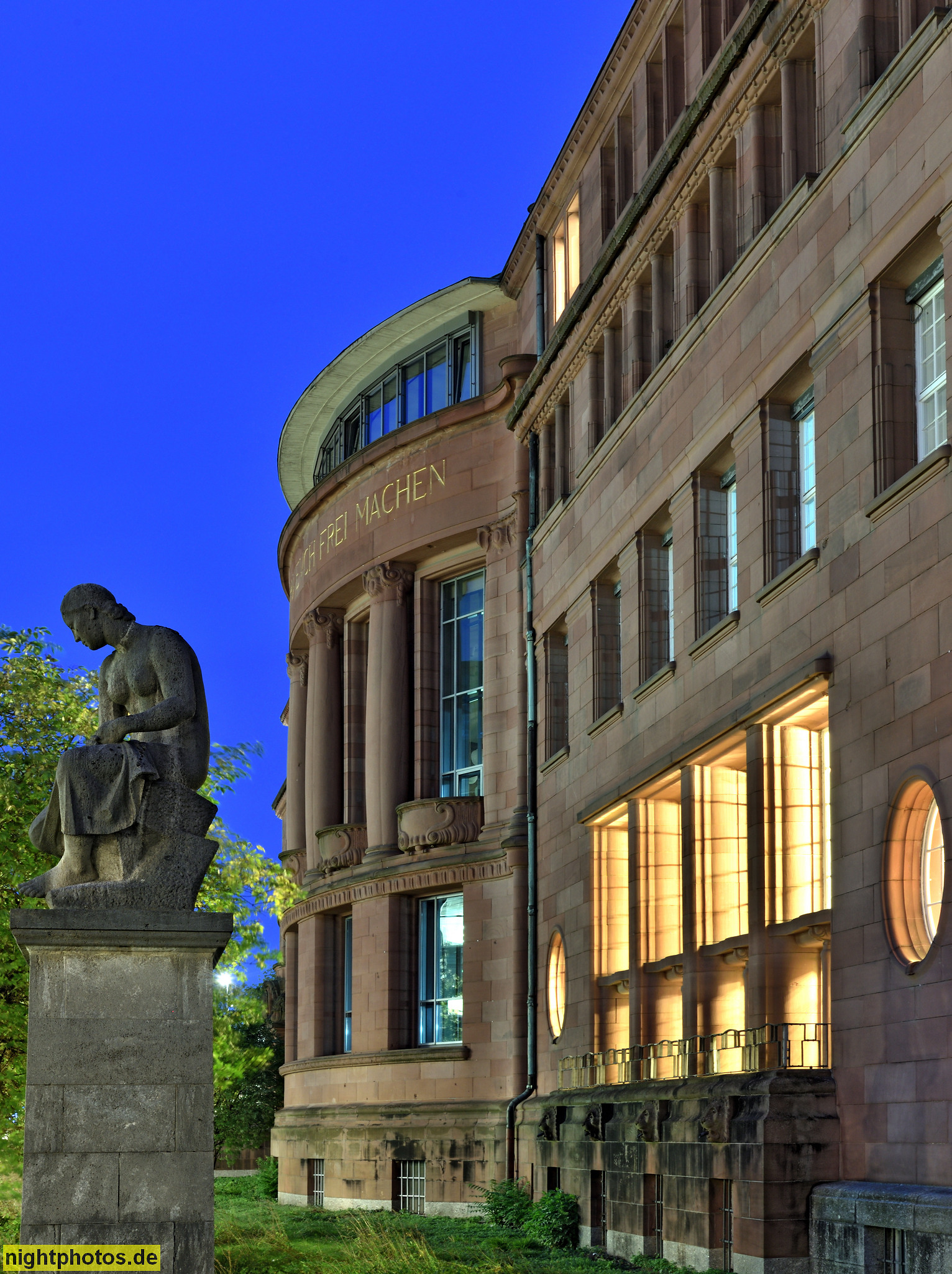 Freiburg. Universität Kollegiengebäude 1. Erbaut 1906-1911 von Friedrich Ratzel und Hermann Billing. Skulptur 'Alma Mater' erschaffen 1928 von Arno Rickert. Platz der Universität 3
