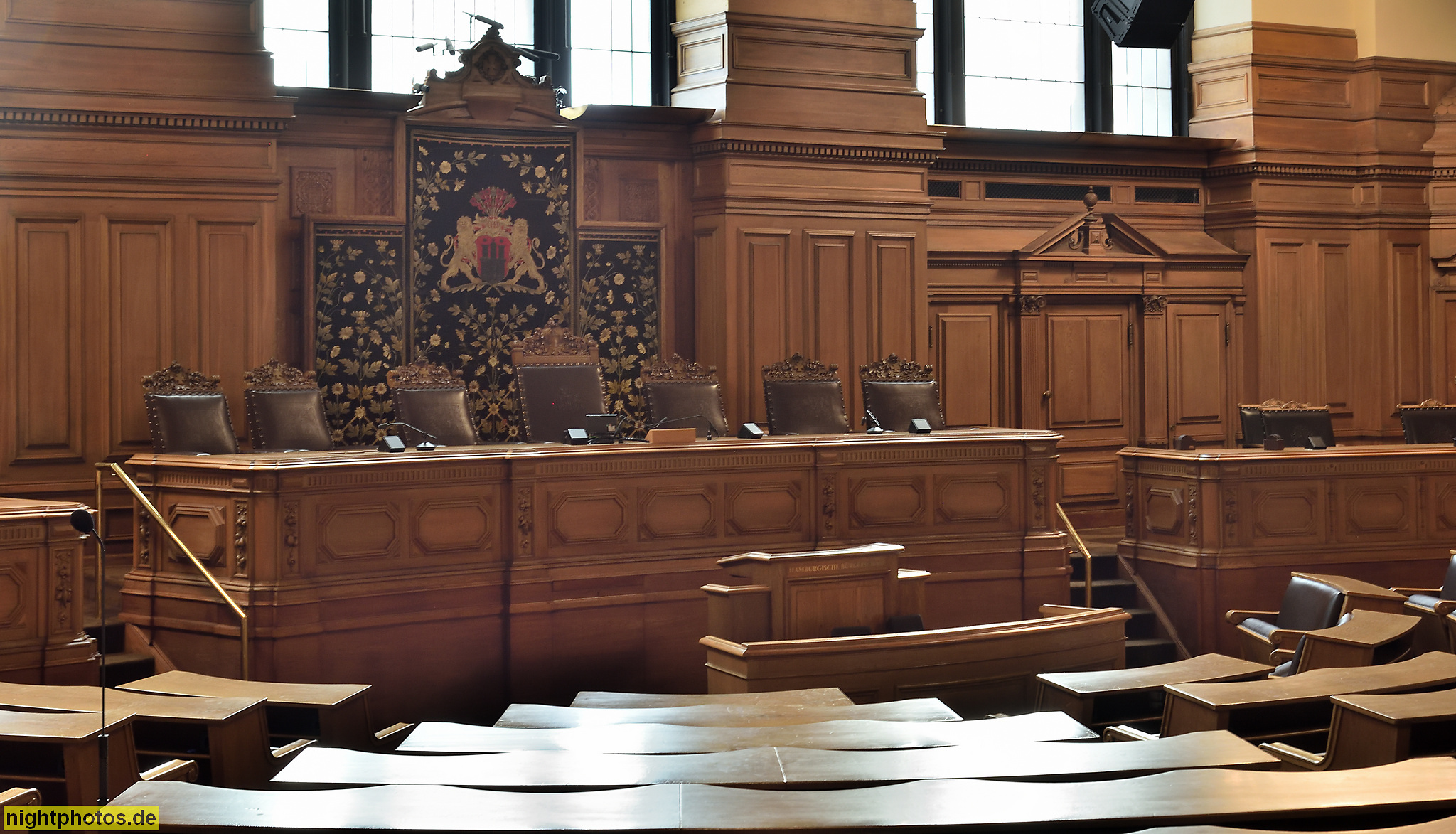 #architecture #architekt martin haller #architektur #baudenkmal #bauwerk #bild #building #erbaut 1886-1897 #foto #fotografie #galerie #gallery #gebäude #hamburg #historisch #holztäfelung #innenansicht #innenaufnahme #ledersessel #martin haller #neorenaissance #parlamentssaal #photo #photography #präsidium #rathaus #rednerpult