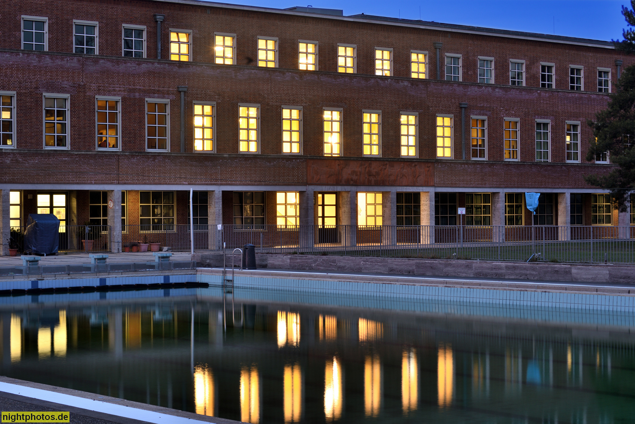 Berlin Westend Olympiapark Deutsches Sportforum erbaut 1926-1928 von Werner March als Haus des Deutschen Sports am Jahnpark mit Bronzefiguren 'Zehnkämpfer' und 'Siegerin' von Arno Breker 1936