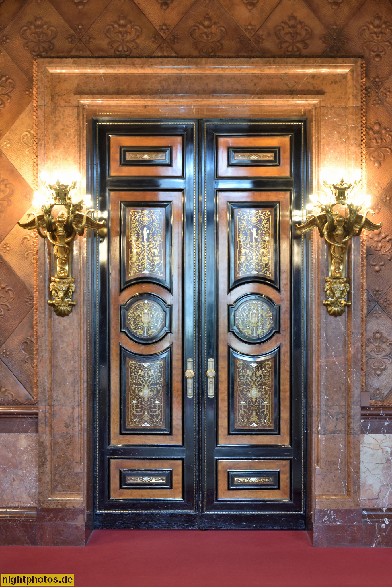 Hamburg Rathaus erbaut 1886-1897 von Martin Haller in Neorenaissance. Bürgermeisteramtszimmer mit Glasmalerei