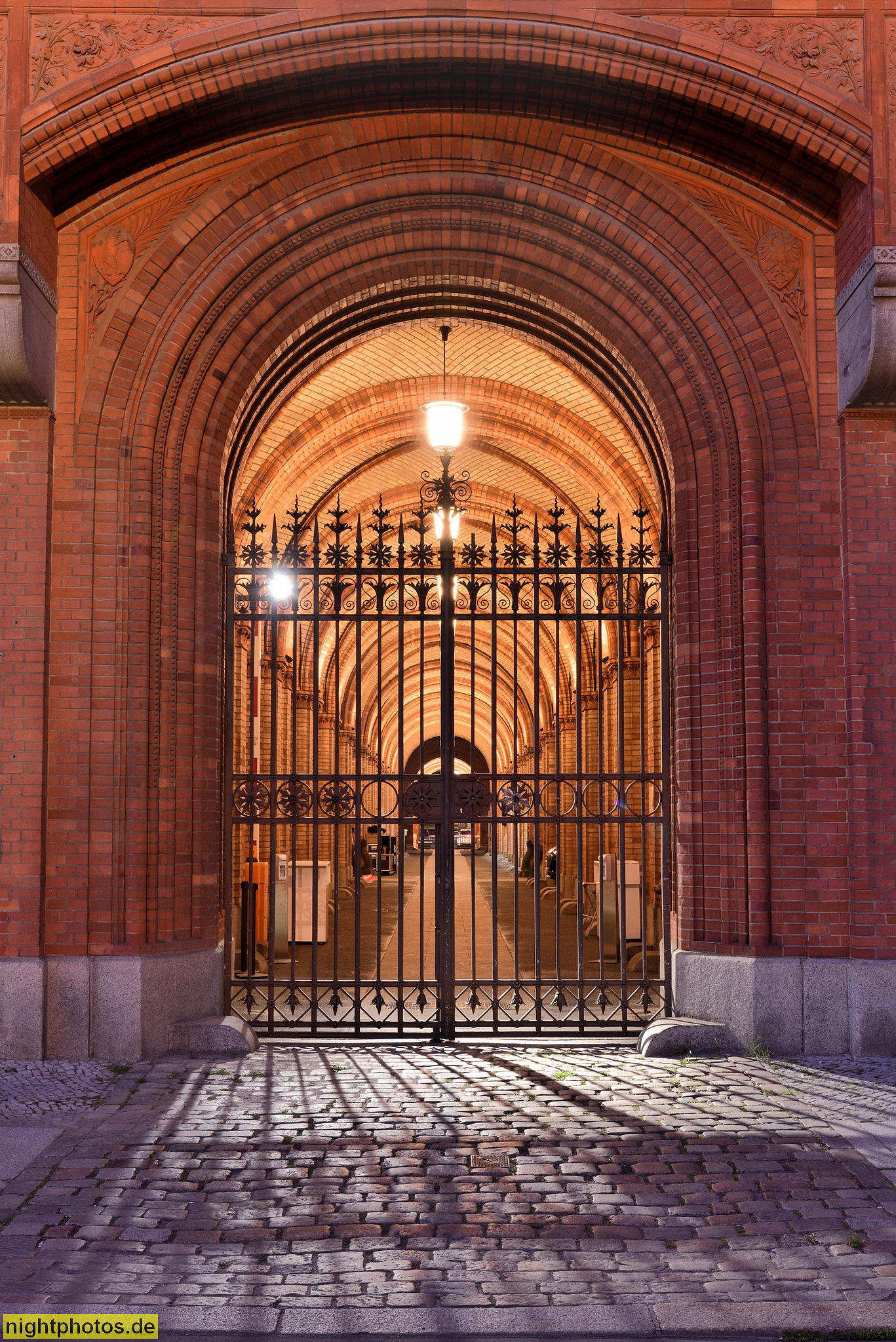 Berlin Mitte Rotes Rathaus erbaut 1861-1869 von Baumeister Hermann Friedrich Waesemann. Sitz des Berliner Senats und des Regierenden Bürgermeisters. Hofdurchfahrt