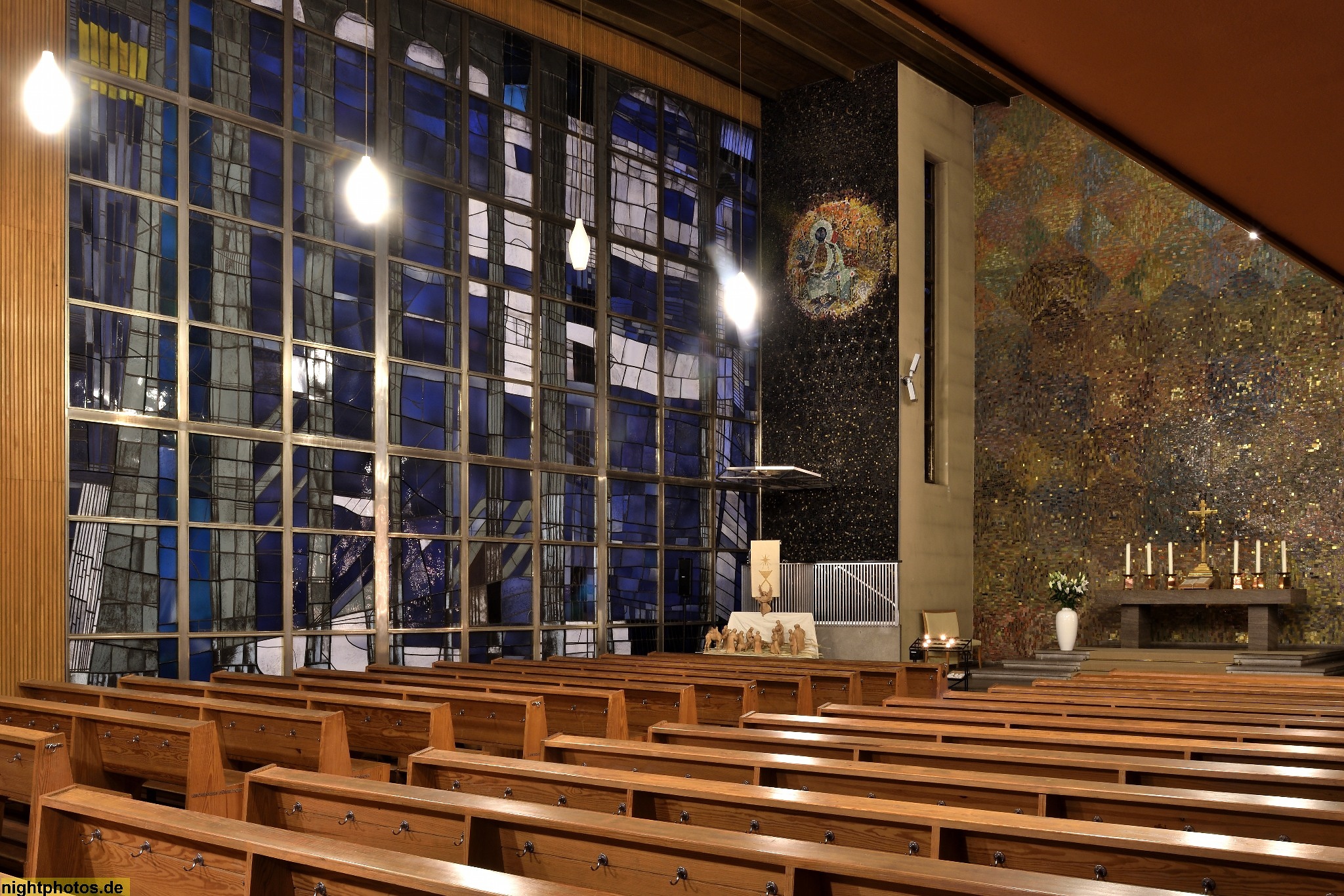 #68m hoch #abendstimmung #angestrahlt #architecture #architektur #bauwerk #berlin #bild #blaue stunde #building #erbaut 1955-1957 #foto #fotografie #fritz schmidt-clausing #galerie #gallery #gebäude #georg meistermann #glaube #gotteshaus #händelallee 20 #hansaviertel #illumination #innenaufnahme #kaiser-friedrich-gedächtniskirche #kirchenbank #ludwig lemmer #mitte #modern #mosaikfenster #nachkriegsmoderne #nachtfoto #photo #photography #religion #seelenbohrer #sichtbeton #st aluminium