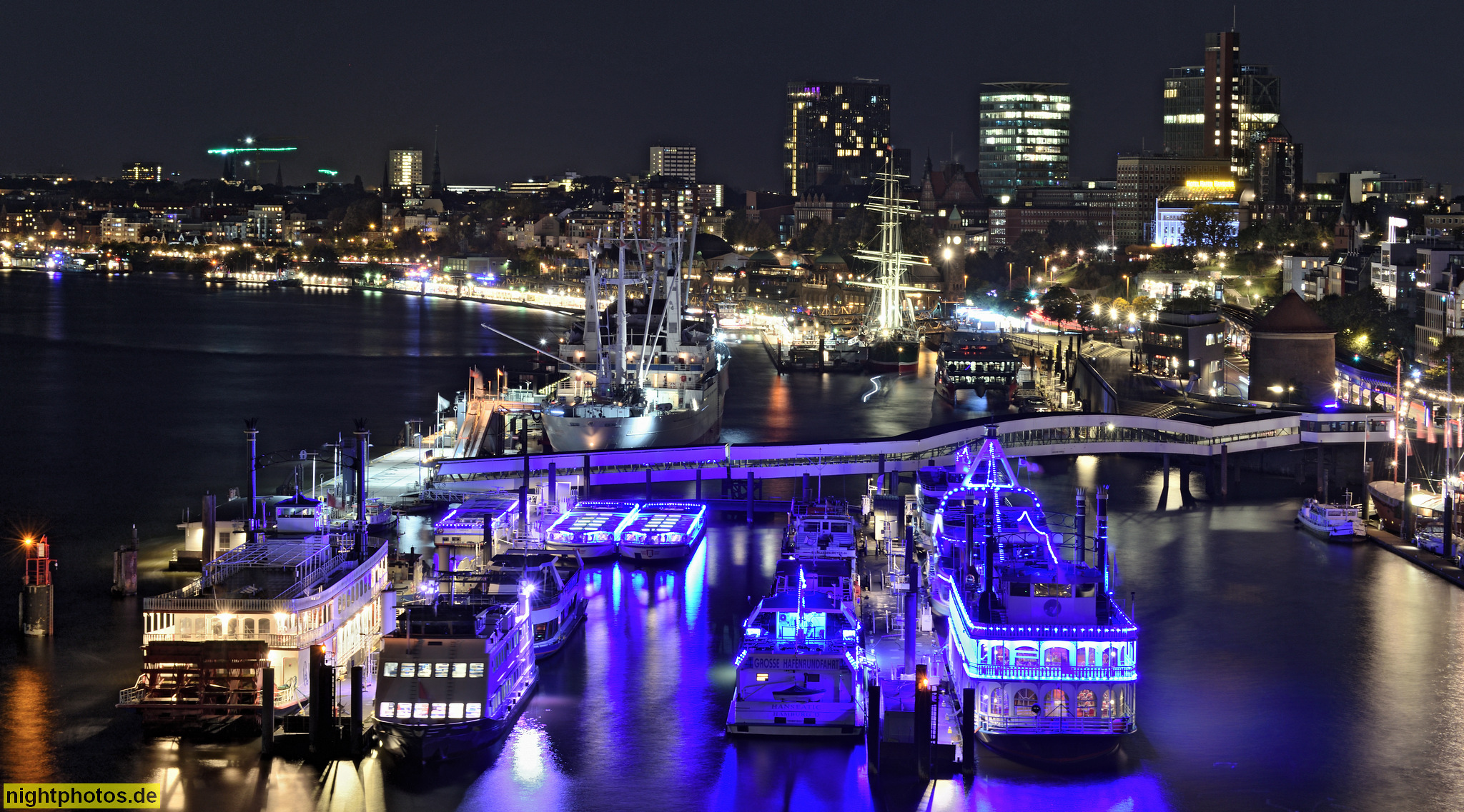Hinten im Bild Museumsshiff Cap San Diego, Landungsbrücken, Elbtunnel, Astraturm, Atlantic Haus, Hotel Hafen Hamburg