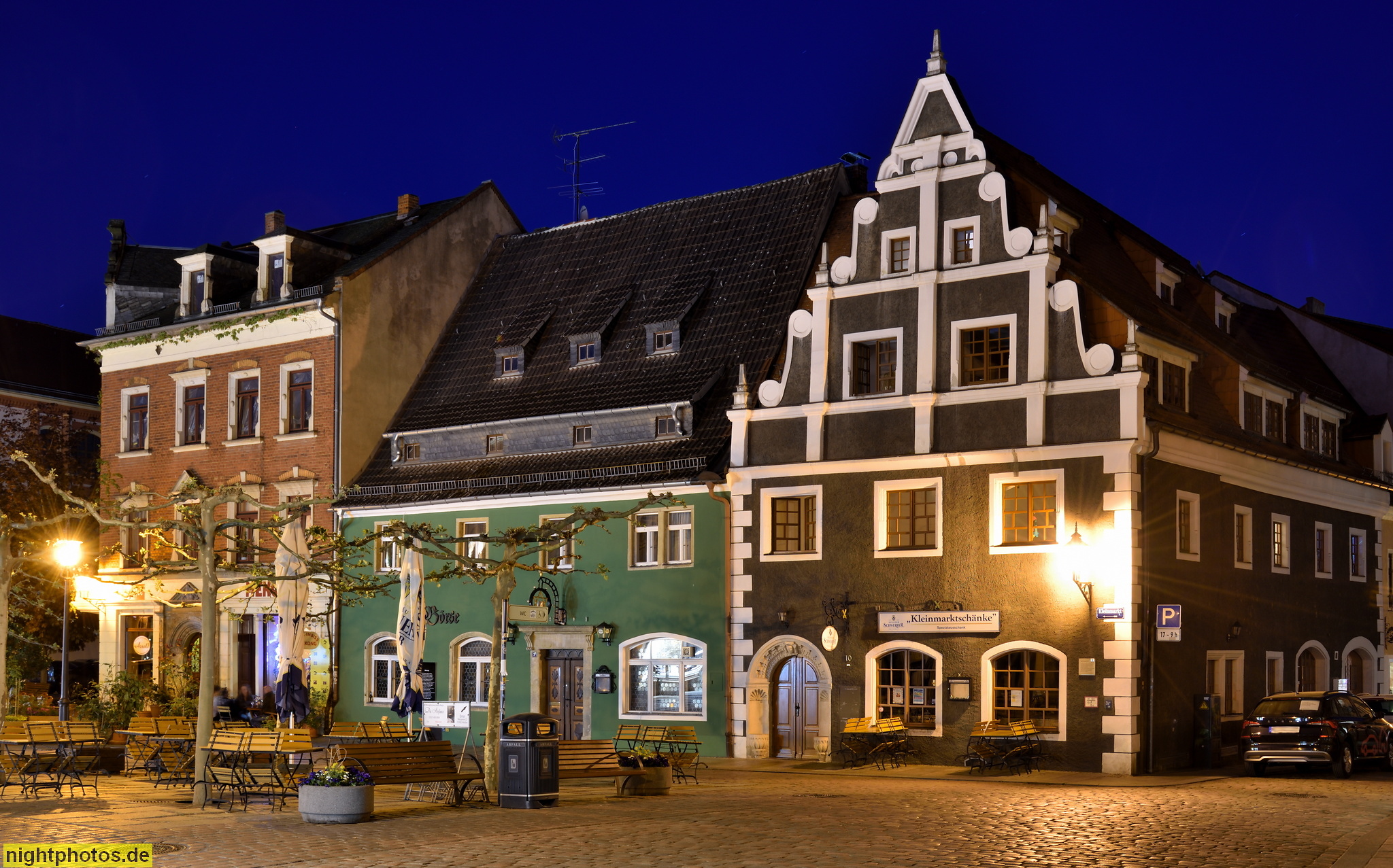 Café Arnold im Kleinmarkt 8 erbaut 1894, mit Sitznischenportal von 1570 Ehemalige Gaststätte 'zur Börse' im Kleinmarkt 9, erbaut frühes 19. Jahrhundert Spezialausschank 'Kleinmarktschänke' im Kleinmarkt 10, erbaut 1607 als Bäckerei. Sitznischenportal und Renaissancegiebel. Giebel 1913 erneuert