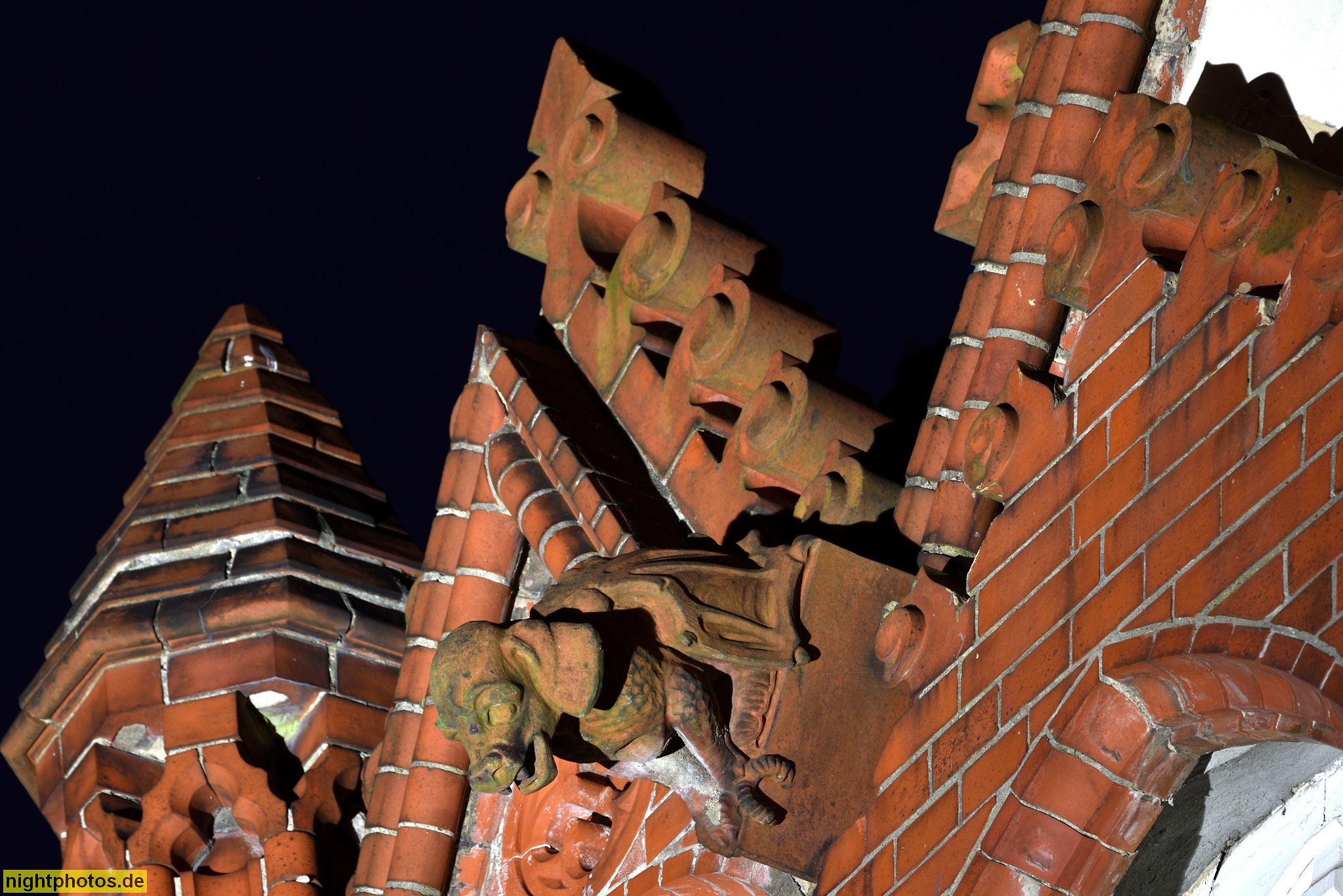 Berlin Tegel Pfarrhaus der Herz-Jesu-Kirche am Brunowplatz erbaut 1912-1913 von J. Welz. Terrakotta Drachenhund als Wasserspeier